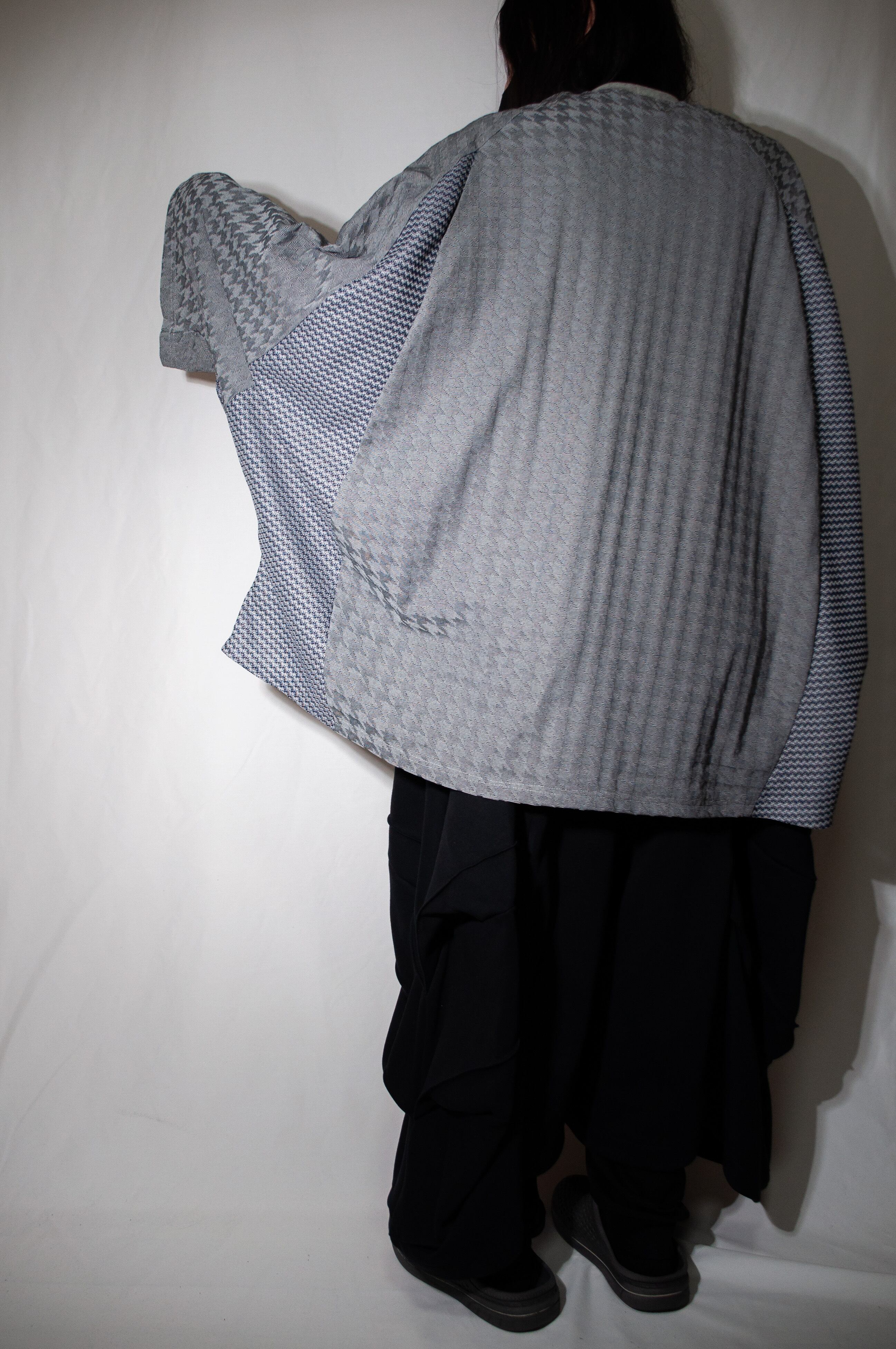 直線と曲線を織り交ぜた切り替えがアクセントとなっており、身幅も広くボリューム感のあるカットソーとなっています。