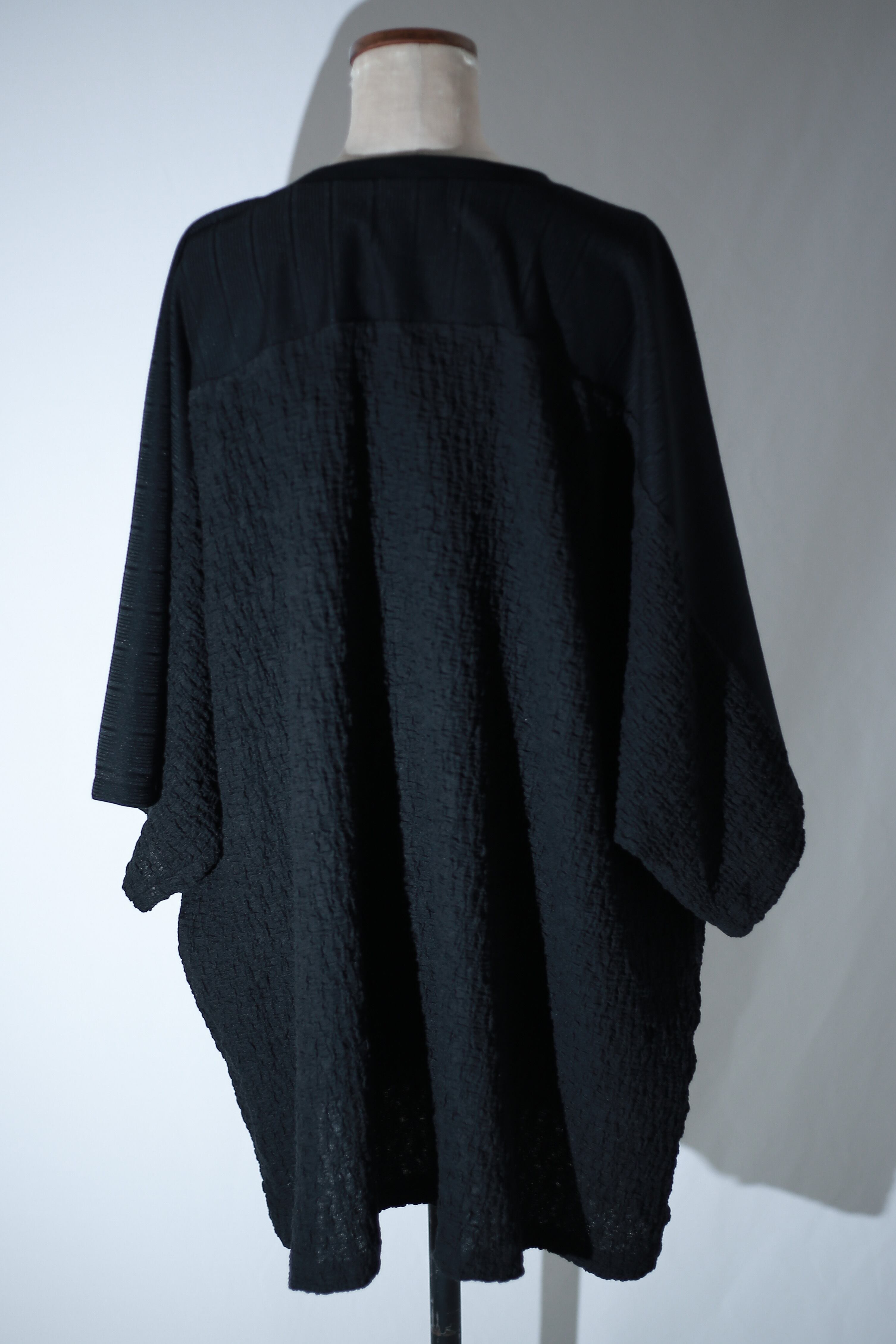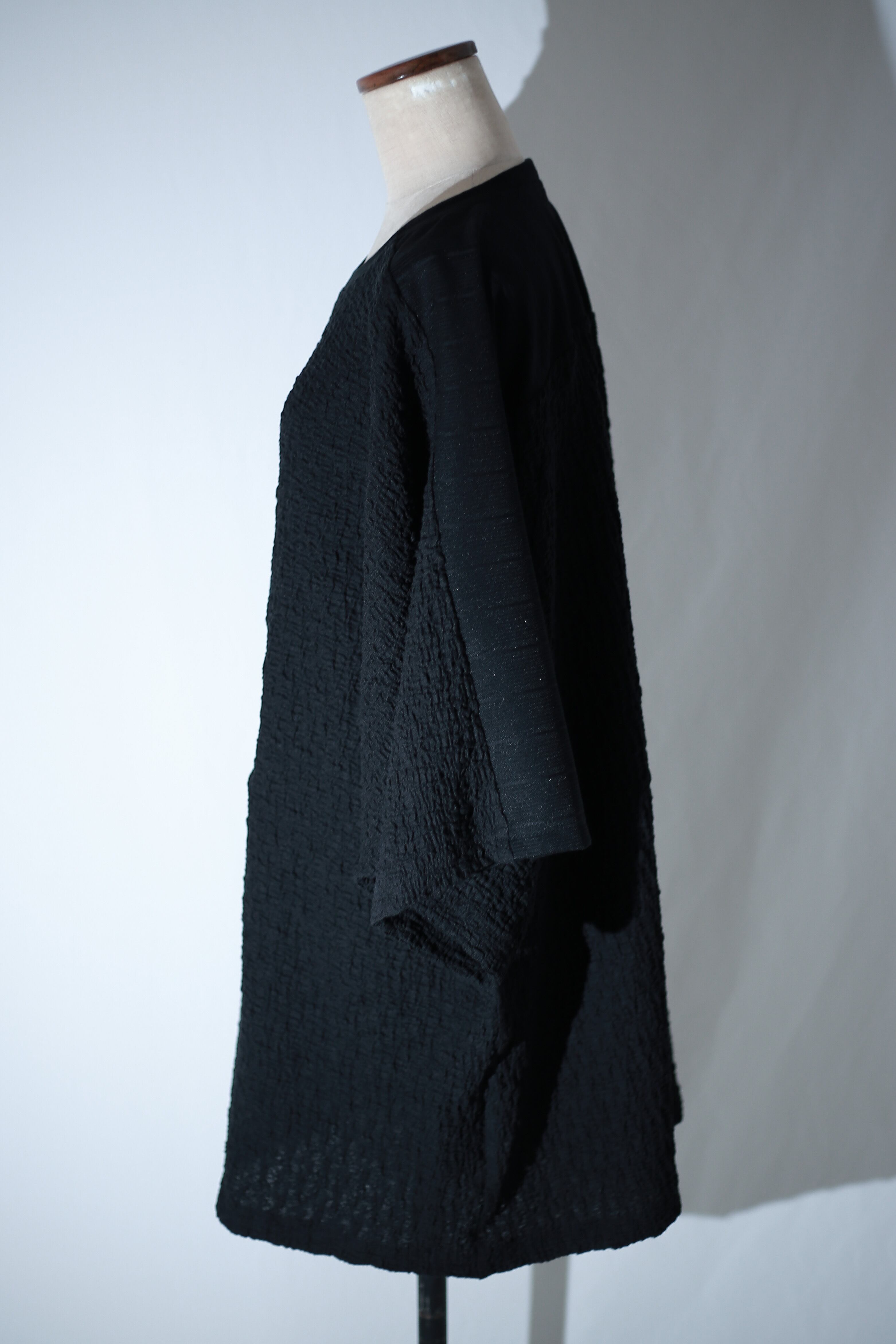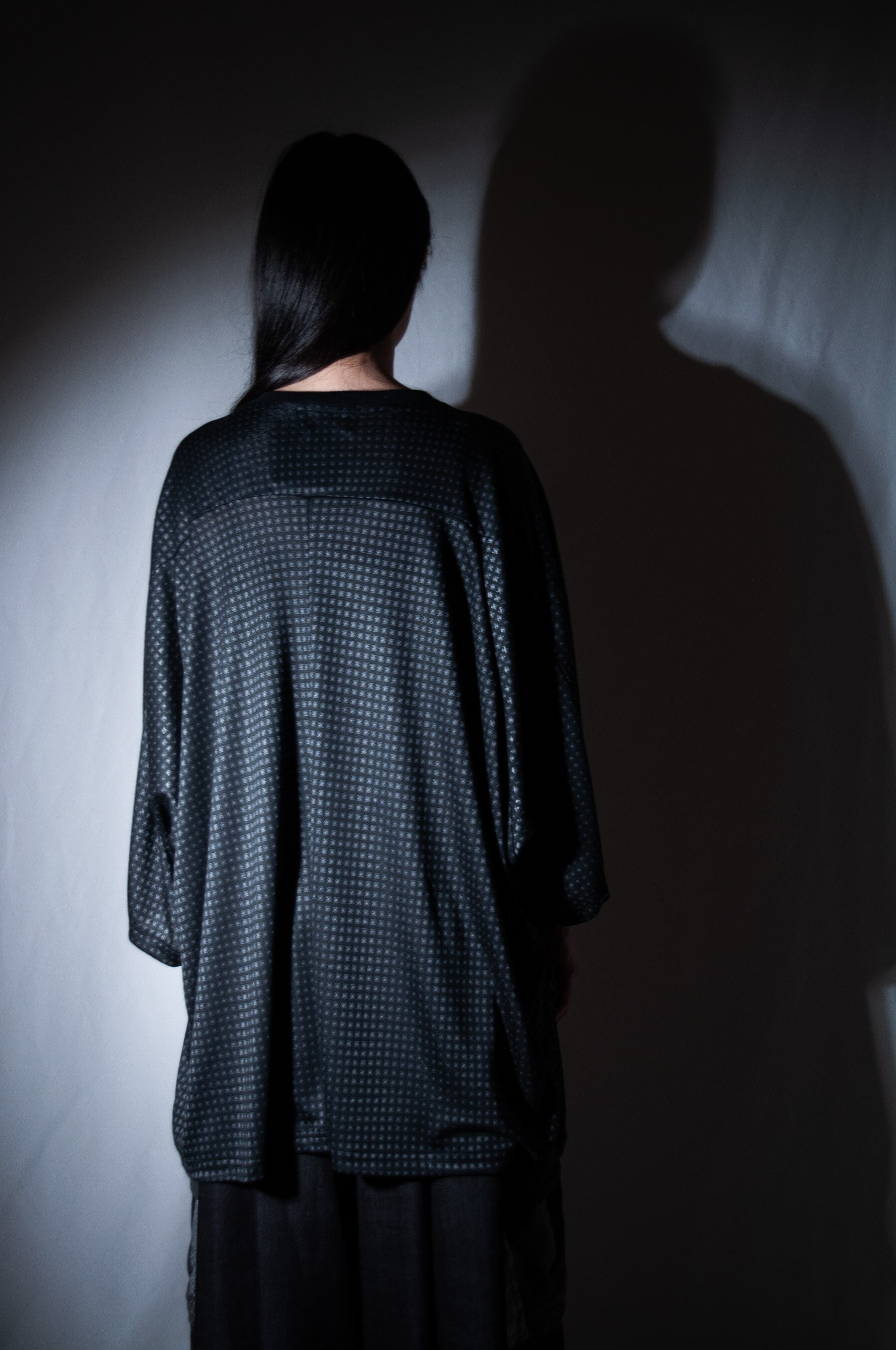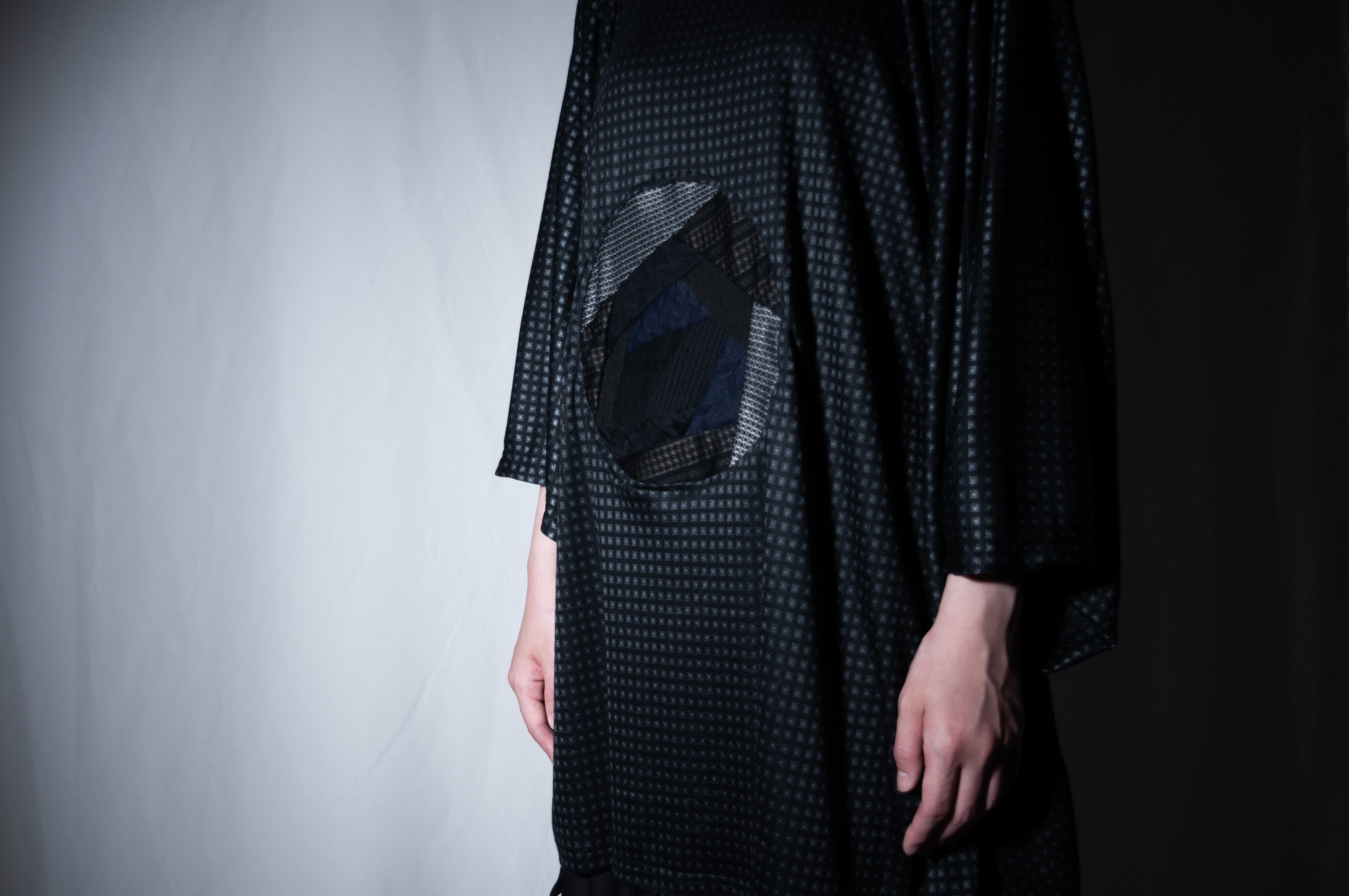 全体的に直線の切り替えで構成されており、和服を意識したカットソーとなっています。