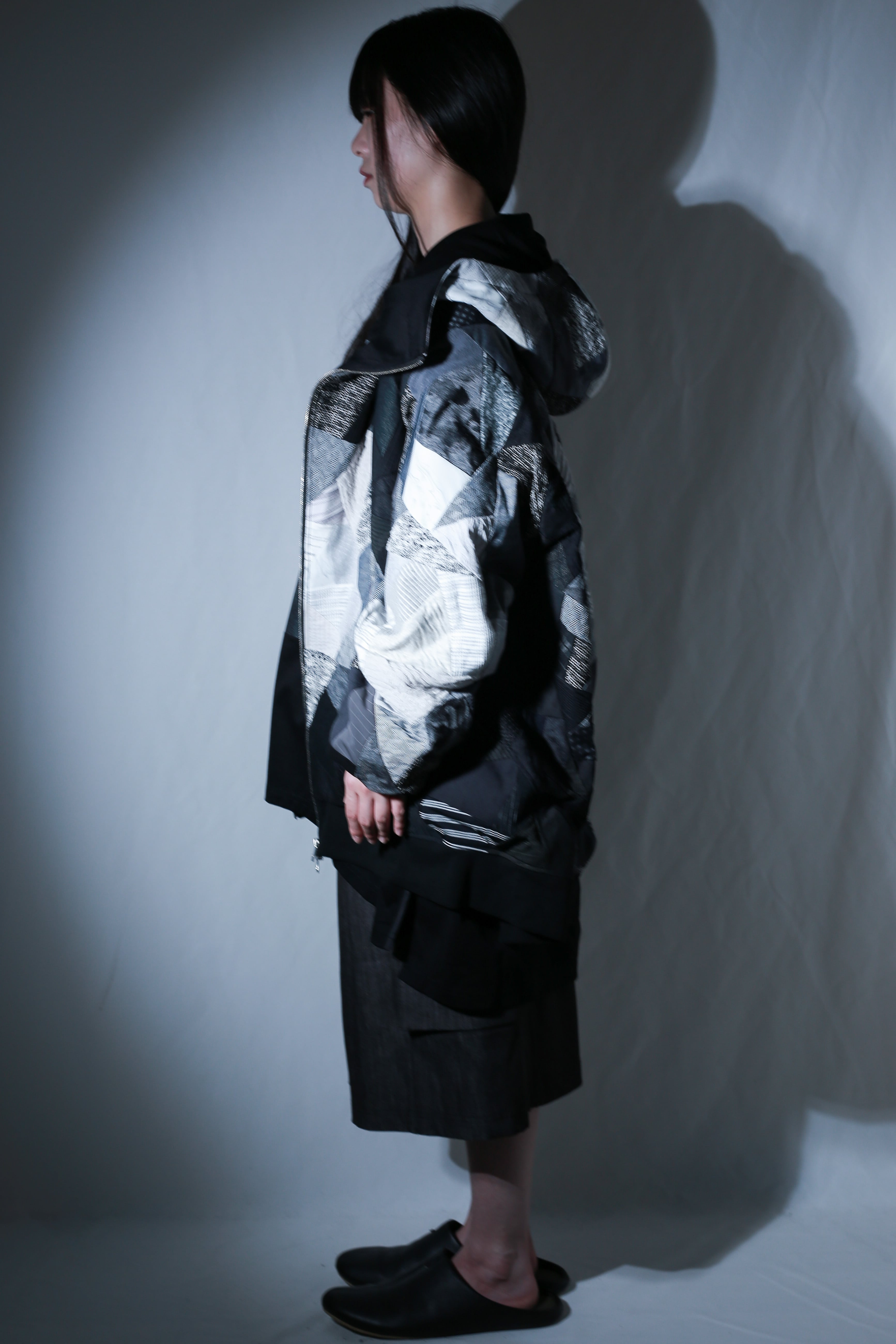 Parkaのパターンをベースに袖をドルマンスリーブに変更し、身幅を広くしました。