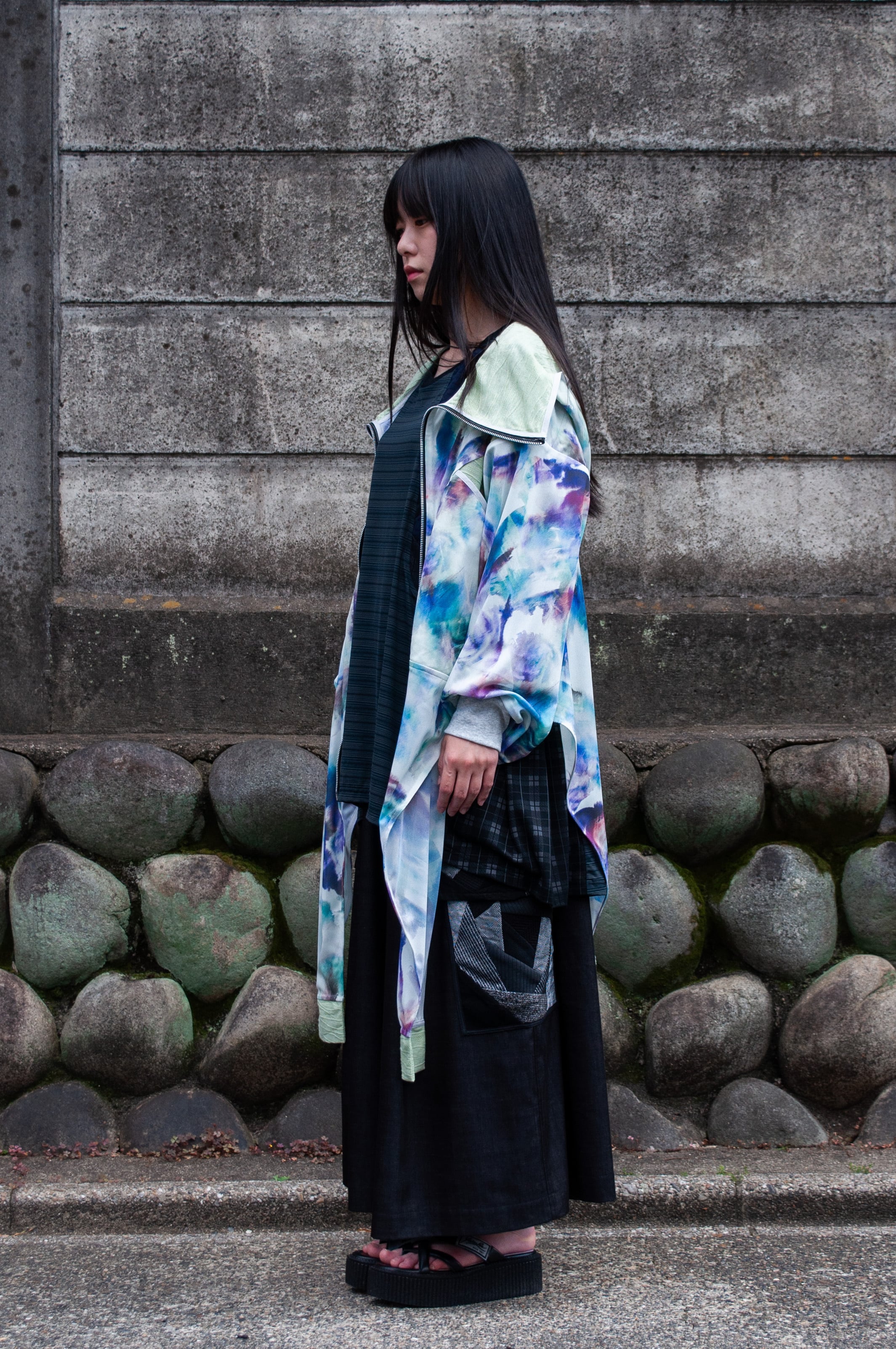 前後に大きく流れるロングシルエットと深めのスリットが、歩くたびに軽やかに靡き、インナーやボトムスのシルエットを美しく引き立てます。