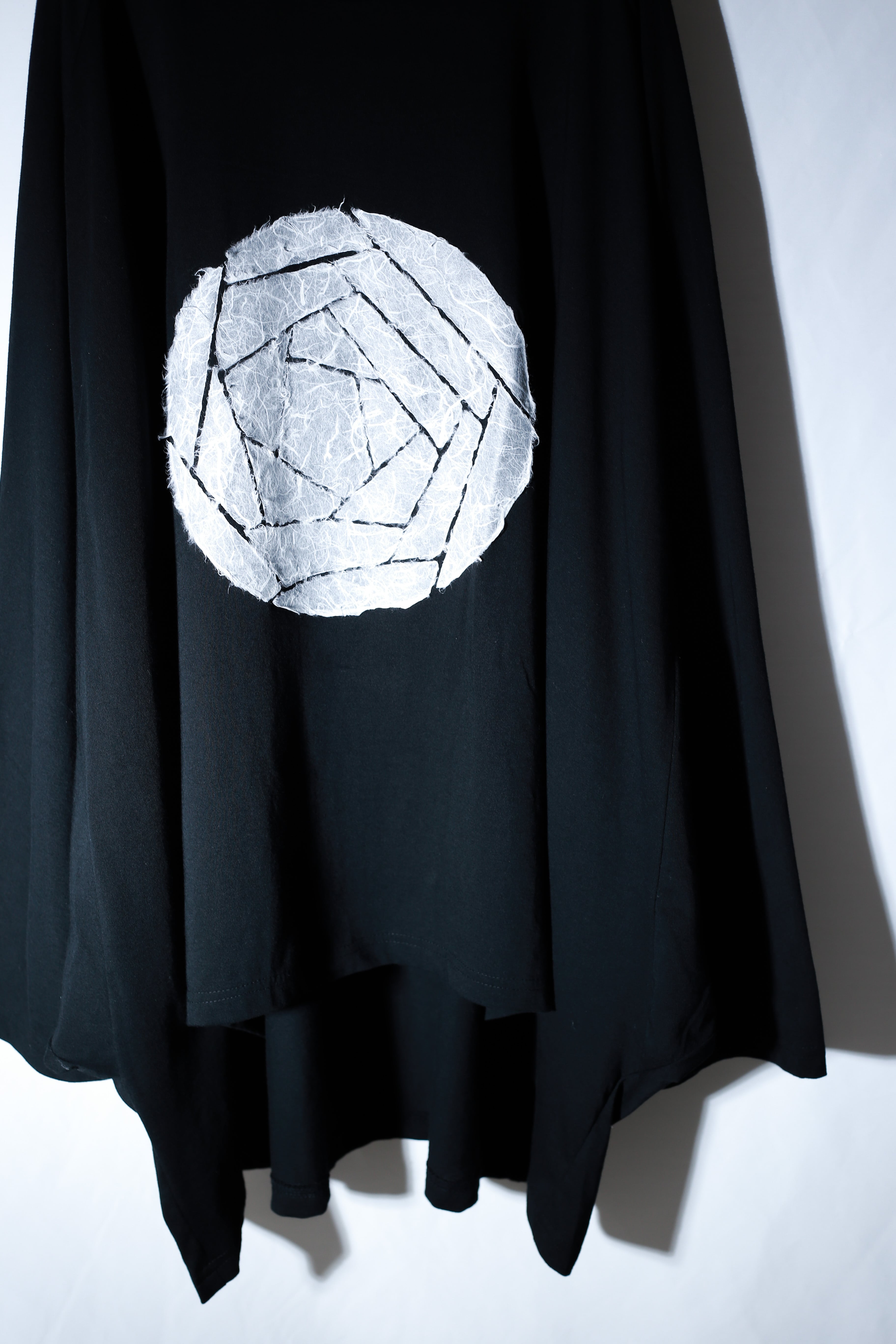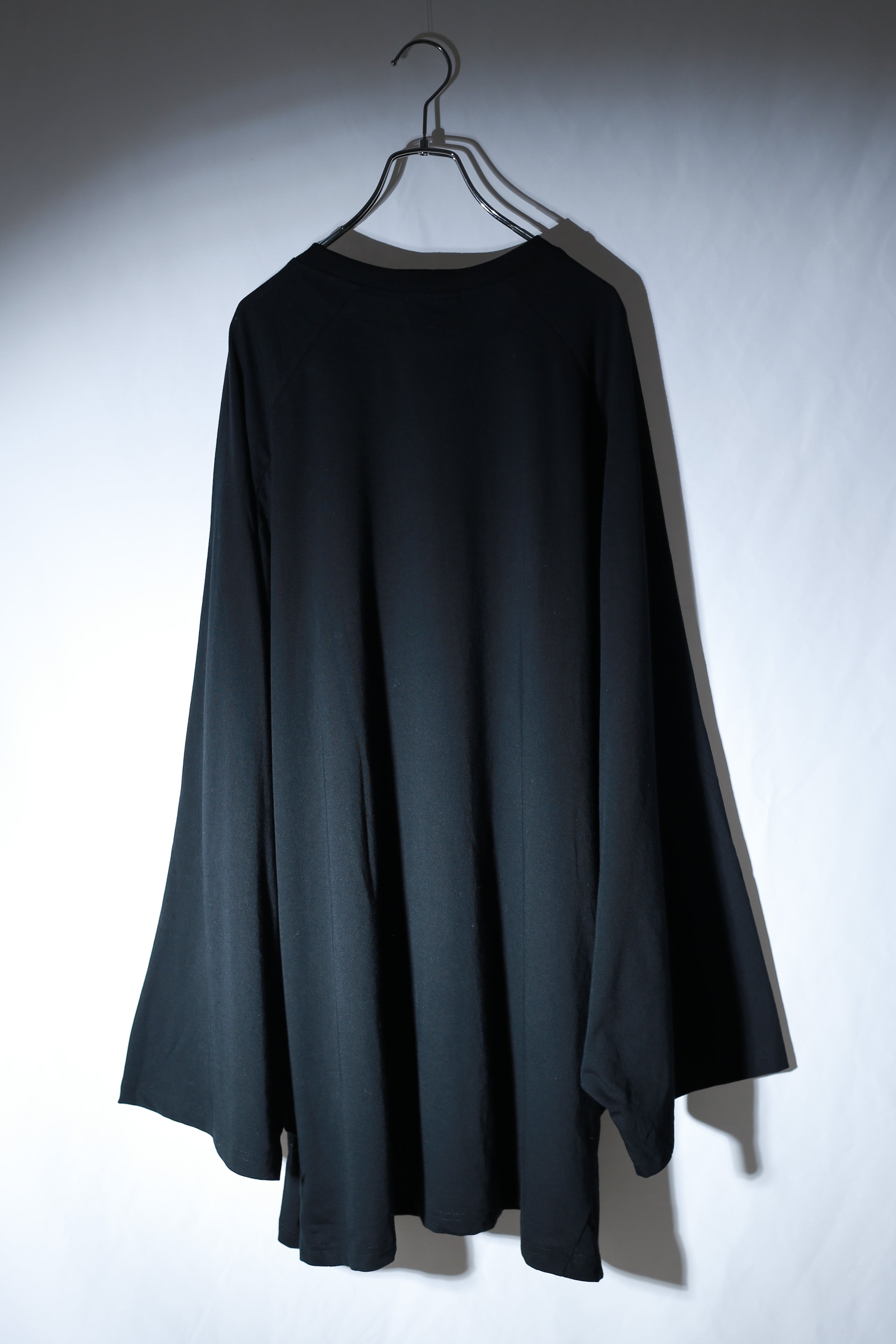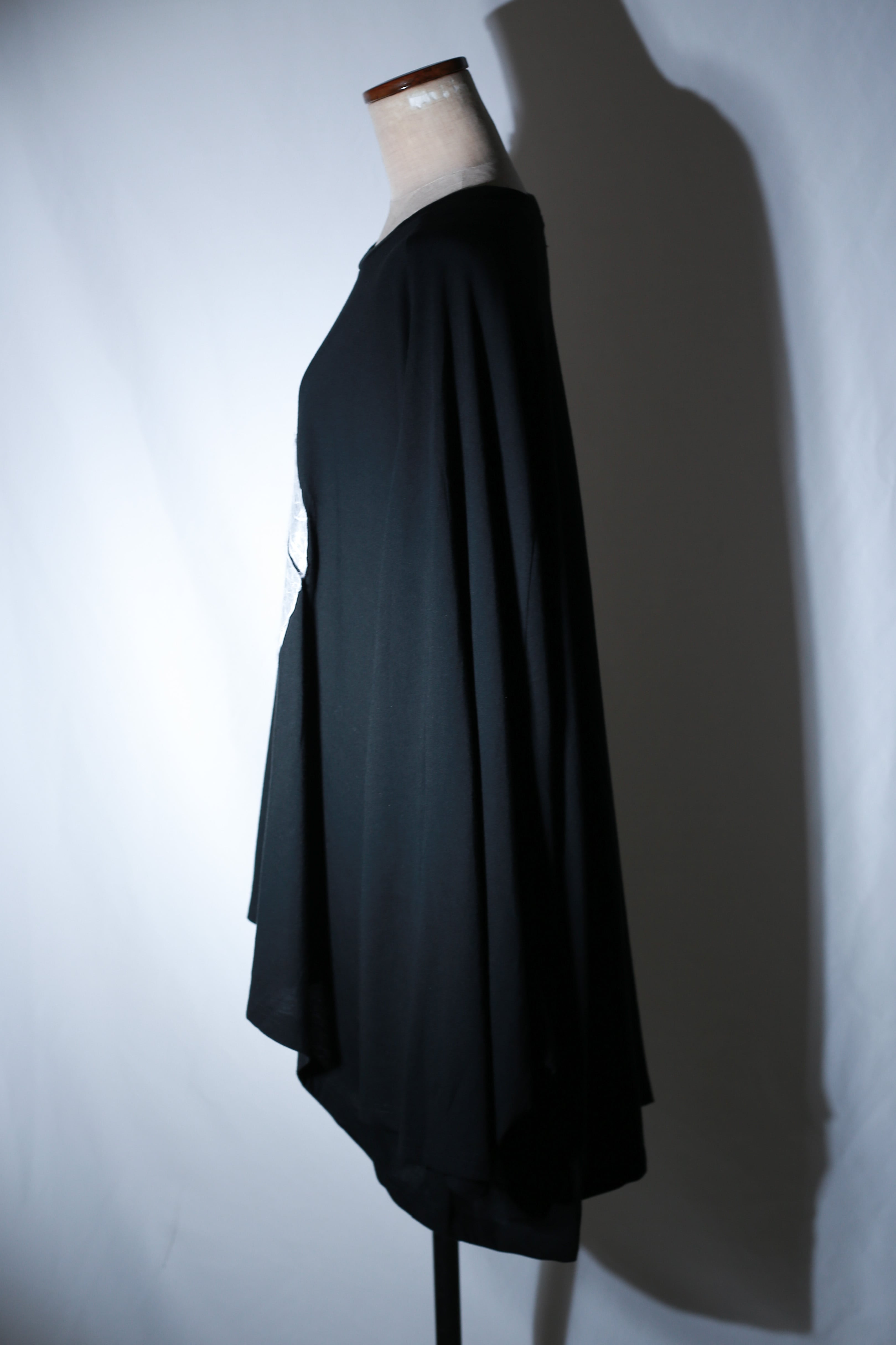 コウモリのような袖と脇のふくらみが、身体に寄り添いながら、空間を包みこむようなボリューム感を演出。