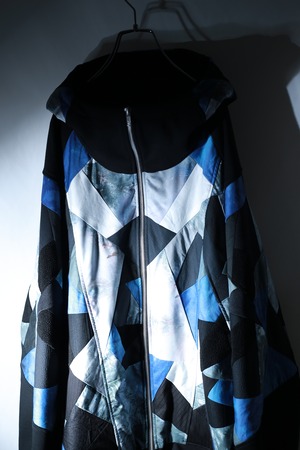 交流の深いブランド「沈み」とのコラボレーションアイテムとなっており、様々な沈みのテキスタイルをバランスを見ながら組み合わせて完成させ、背中の部分にデザイナー自身がペイントを施しています。