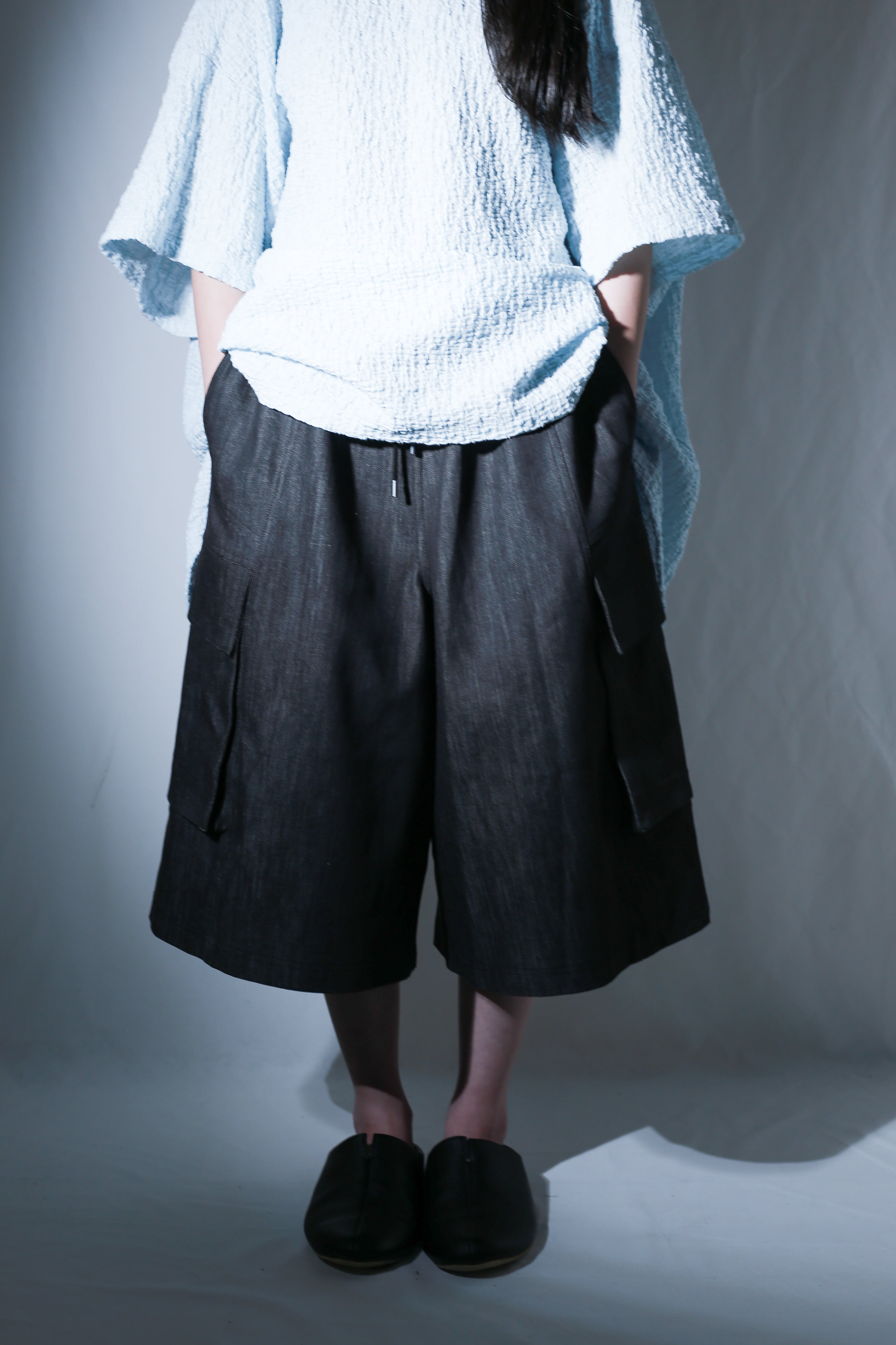 裾に向かって広がる太めのシルエットが特徴で、カクレミのカットソーやワイドトップスとも好相性。