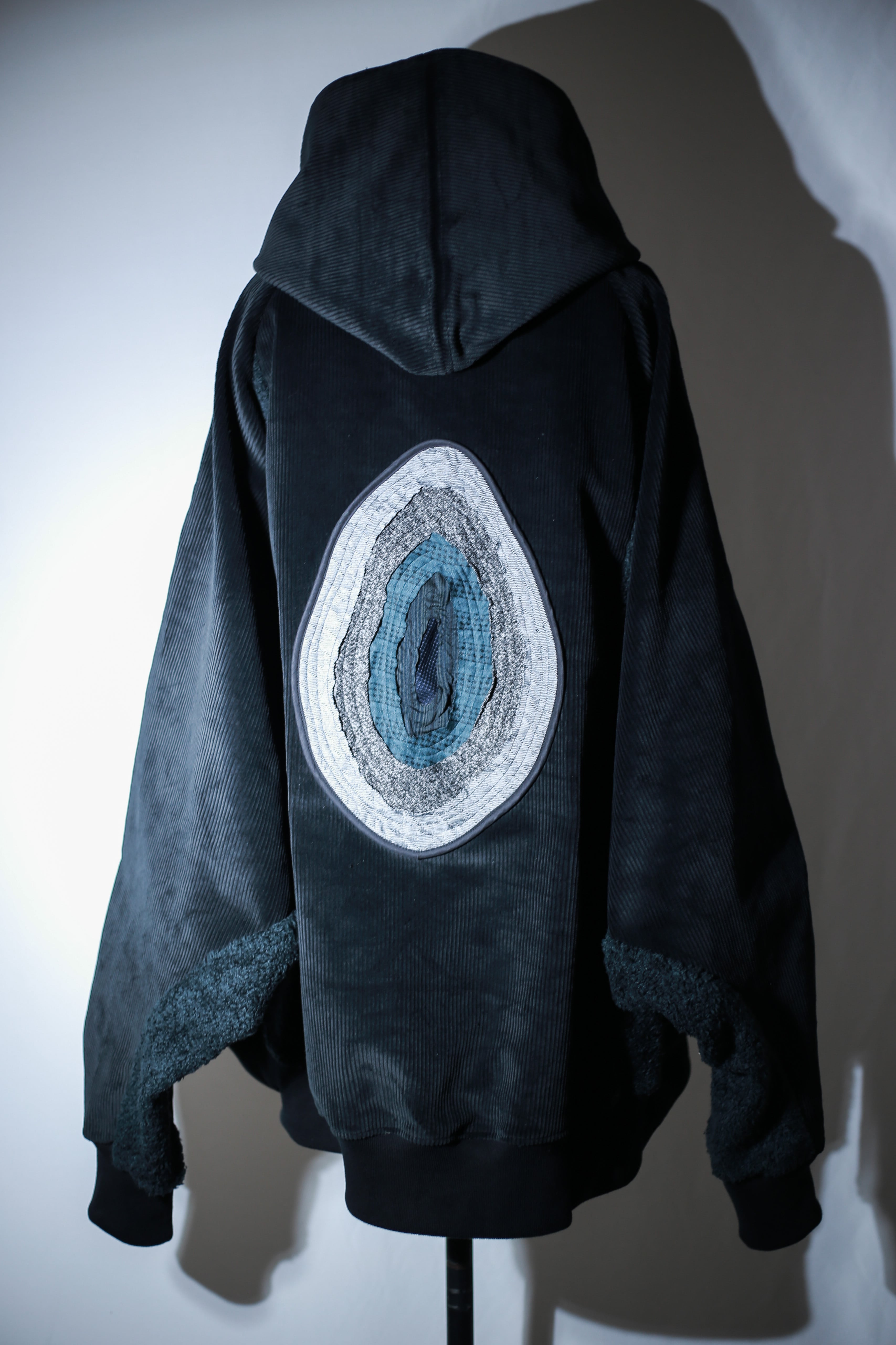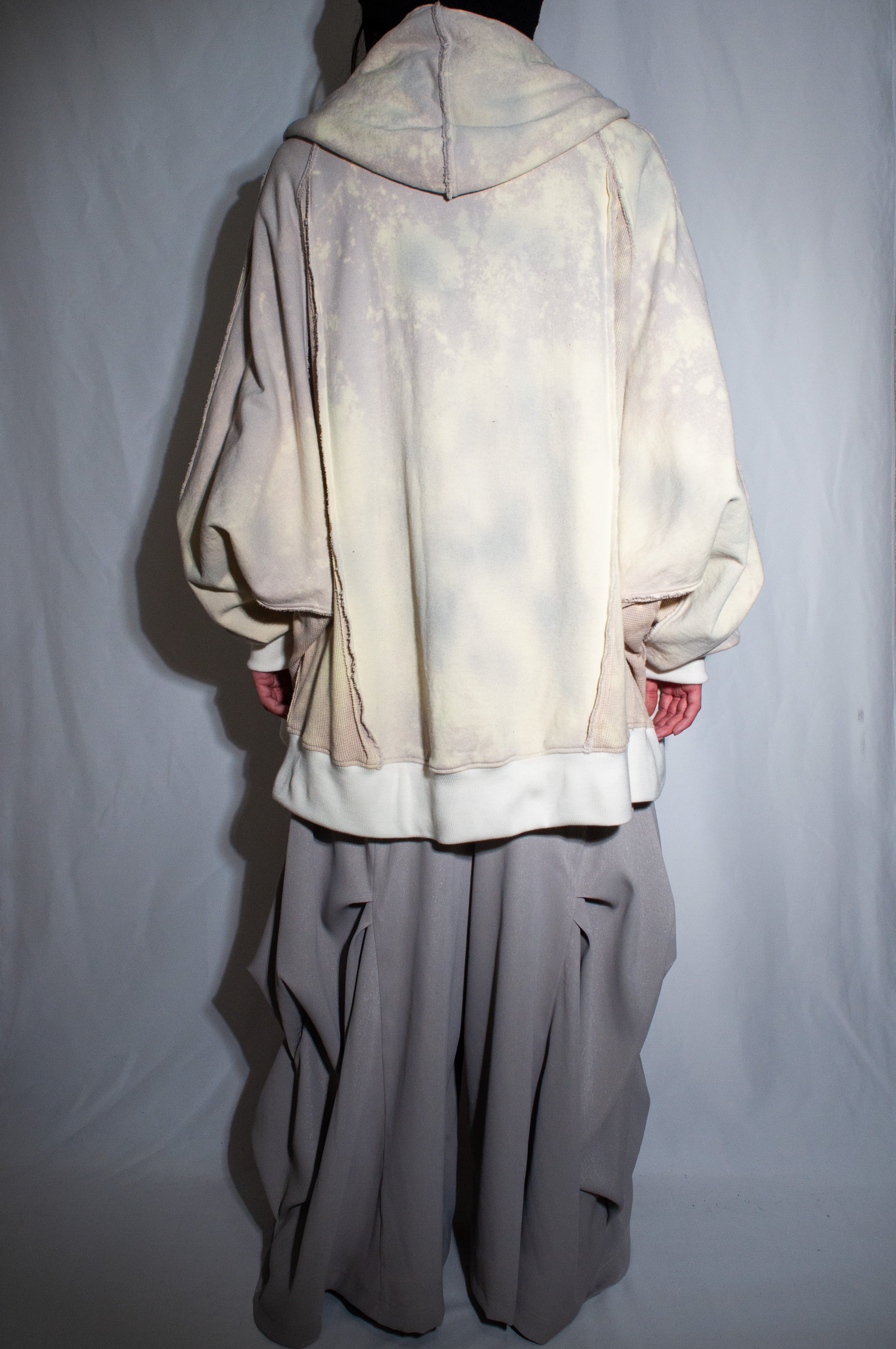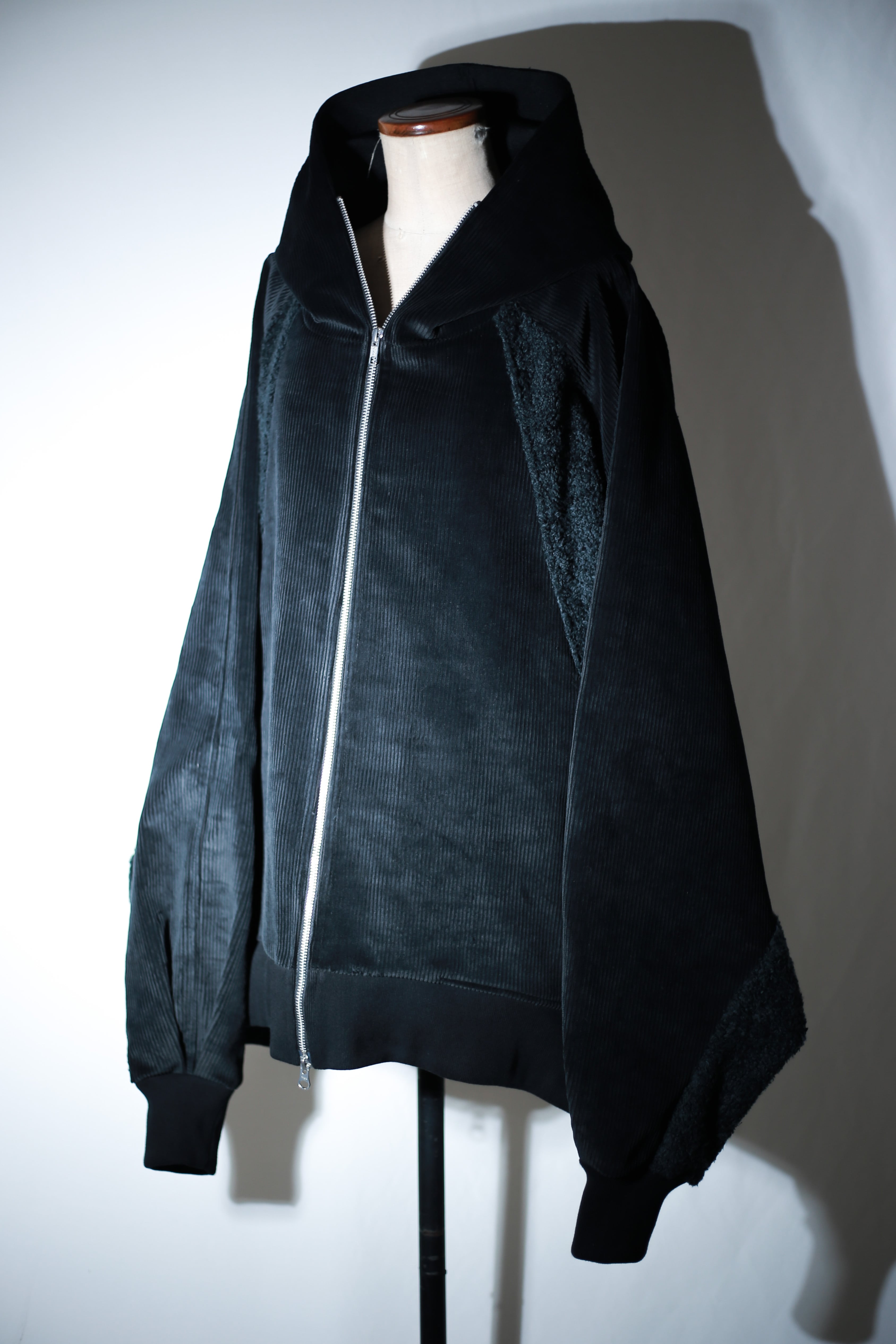 直線と曲線を織り交ぜた切り替えがアクセントとなっており、身幅も広くボリューム感のあるパーカーとなっています。