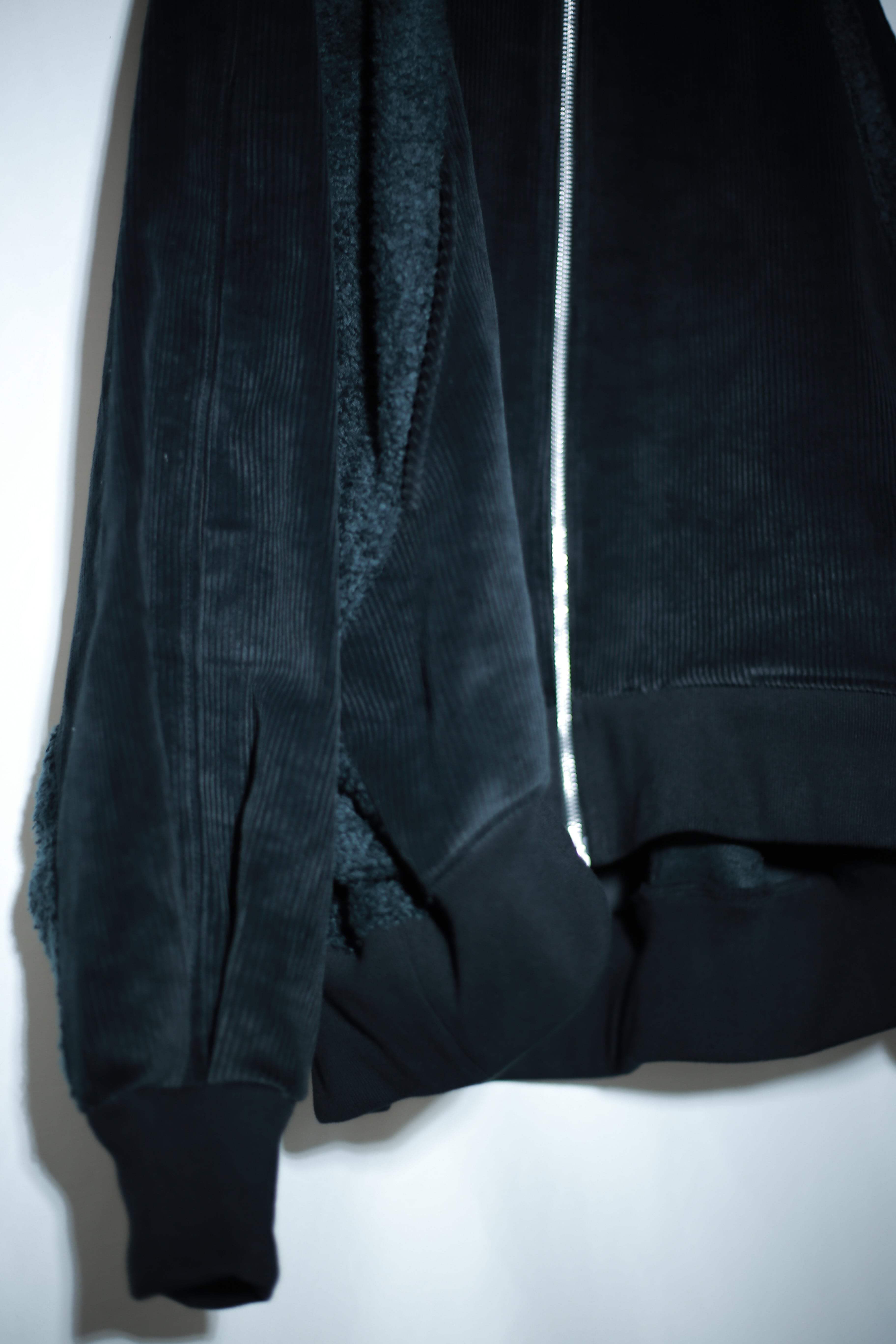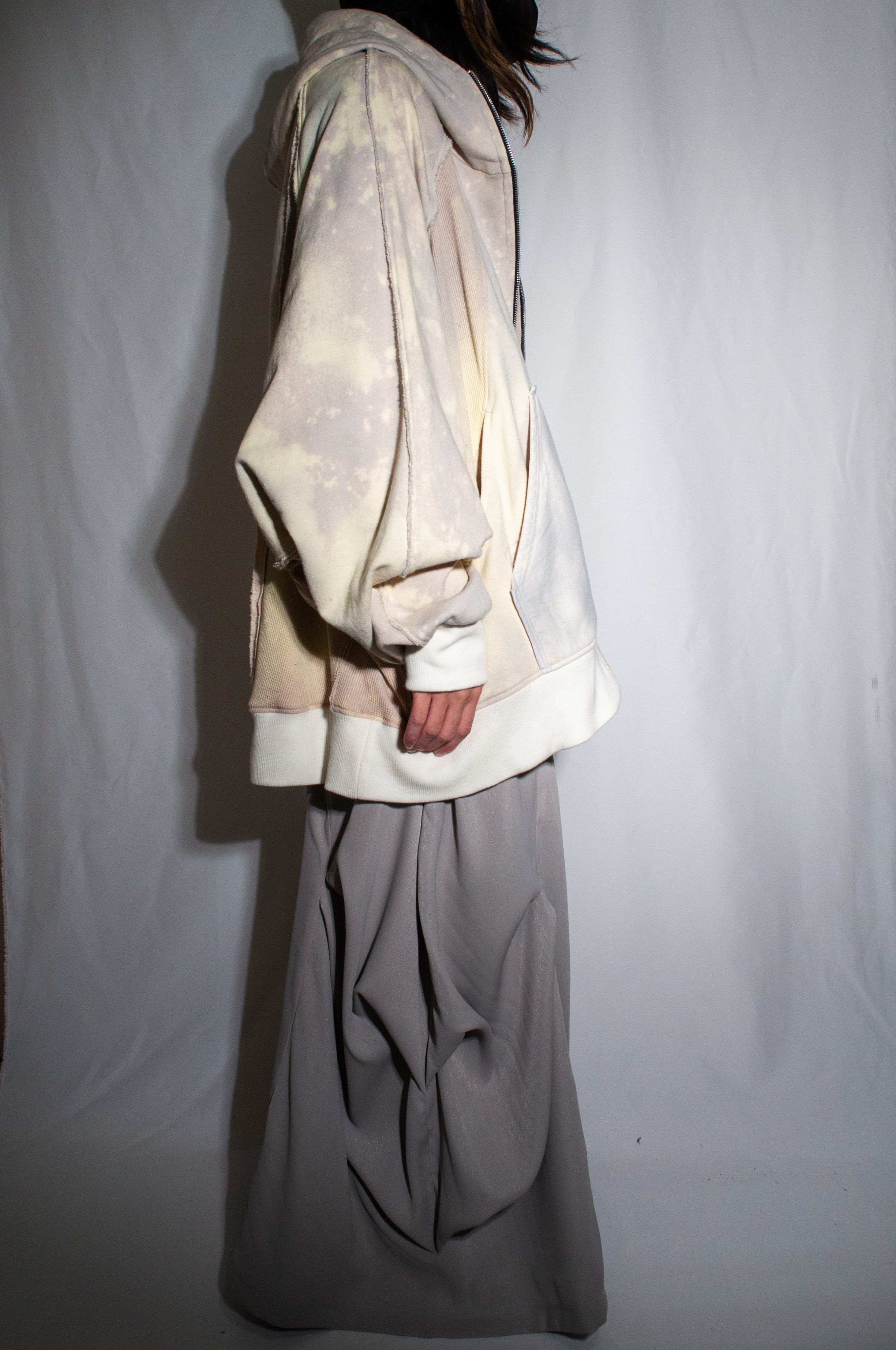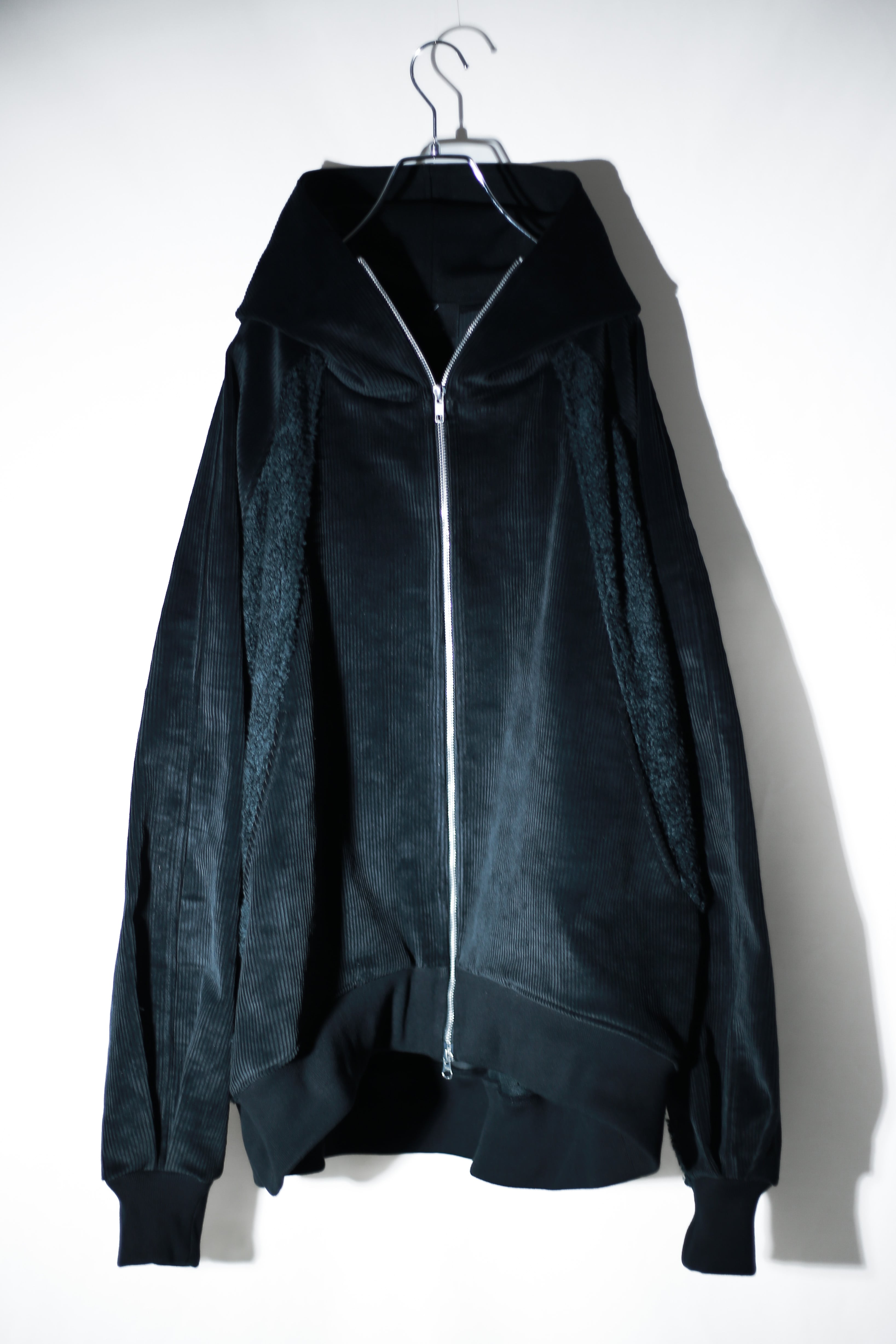 直線と曲線を織り交ぜた切り替えがアクセントとなっており、身幅も広くボリューム感のあるパーカーとなっています。