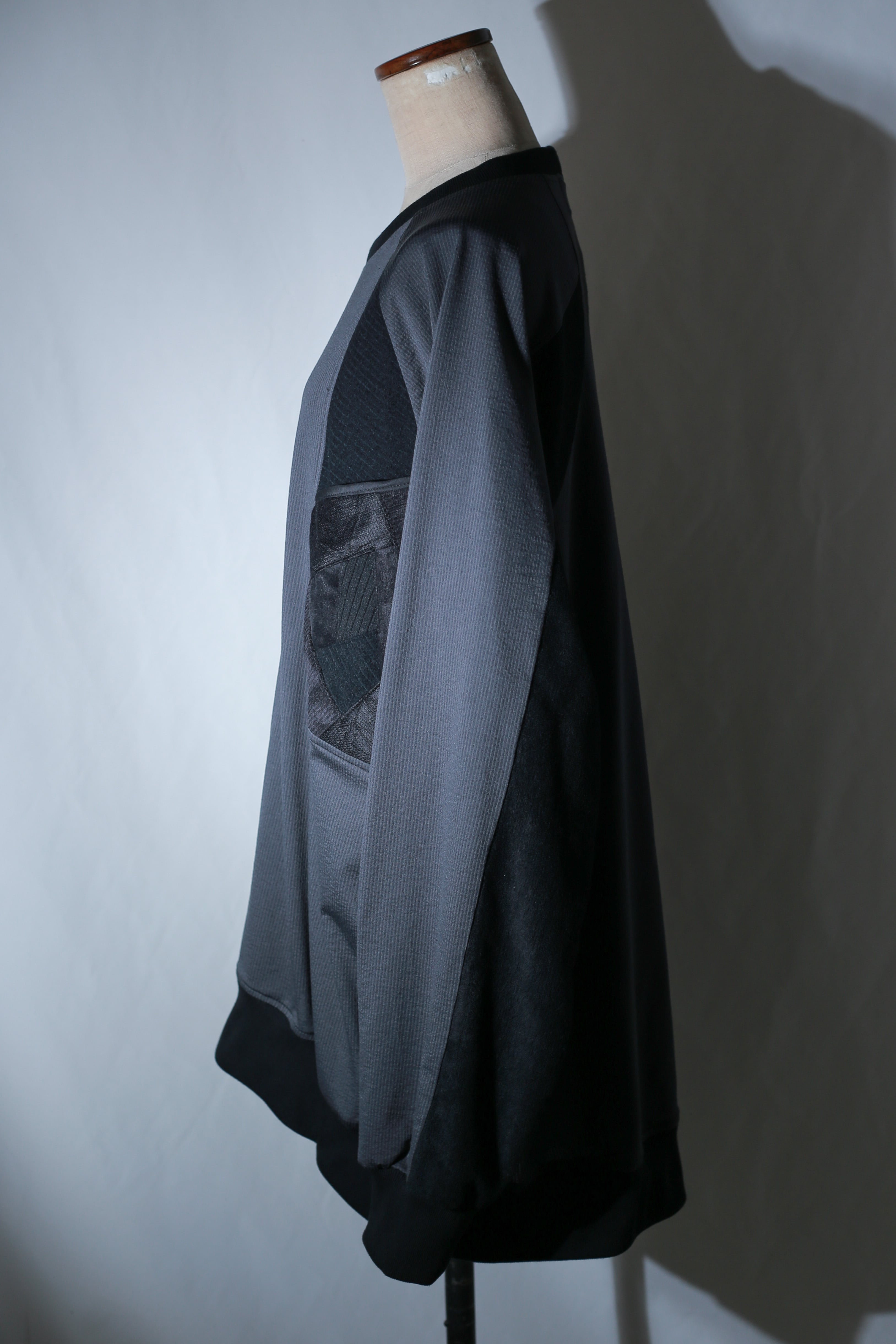 後ろの切り替え、前のパッチワークのポケットが特徴でシンプルながらも