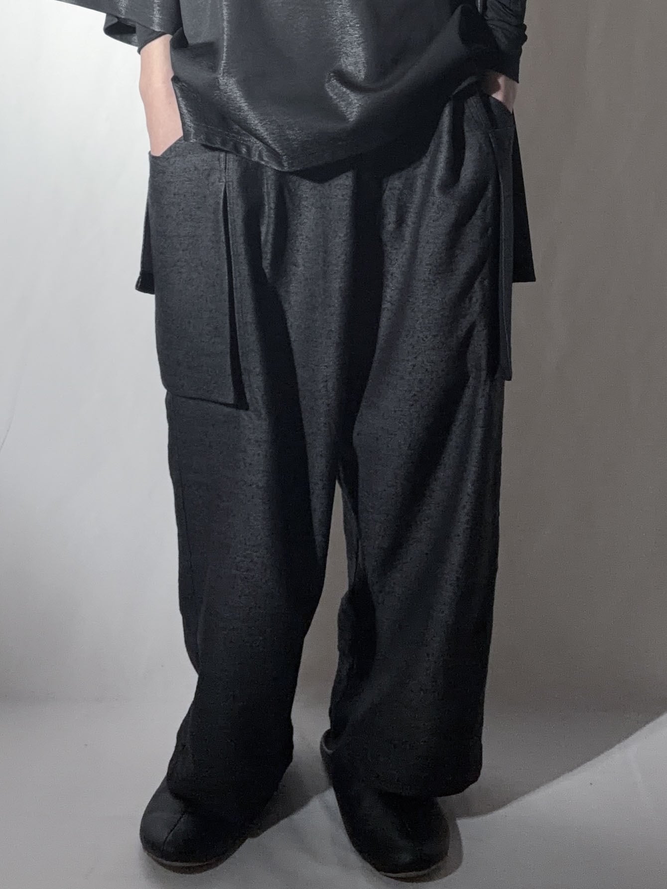 脇部分のポケット、下部分にはカーゴパンツのようなデザインを配置しています。