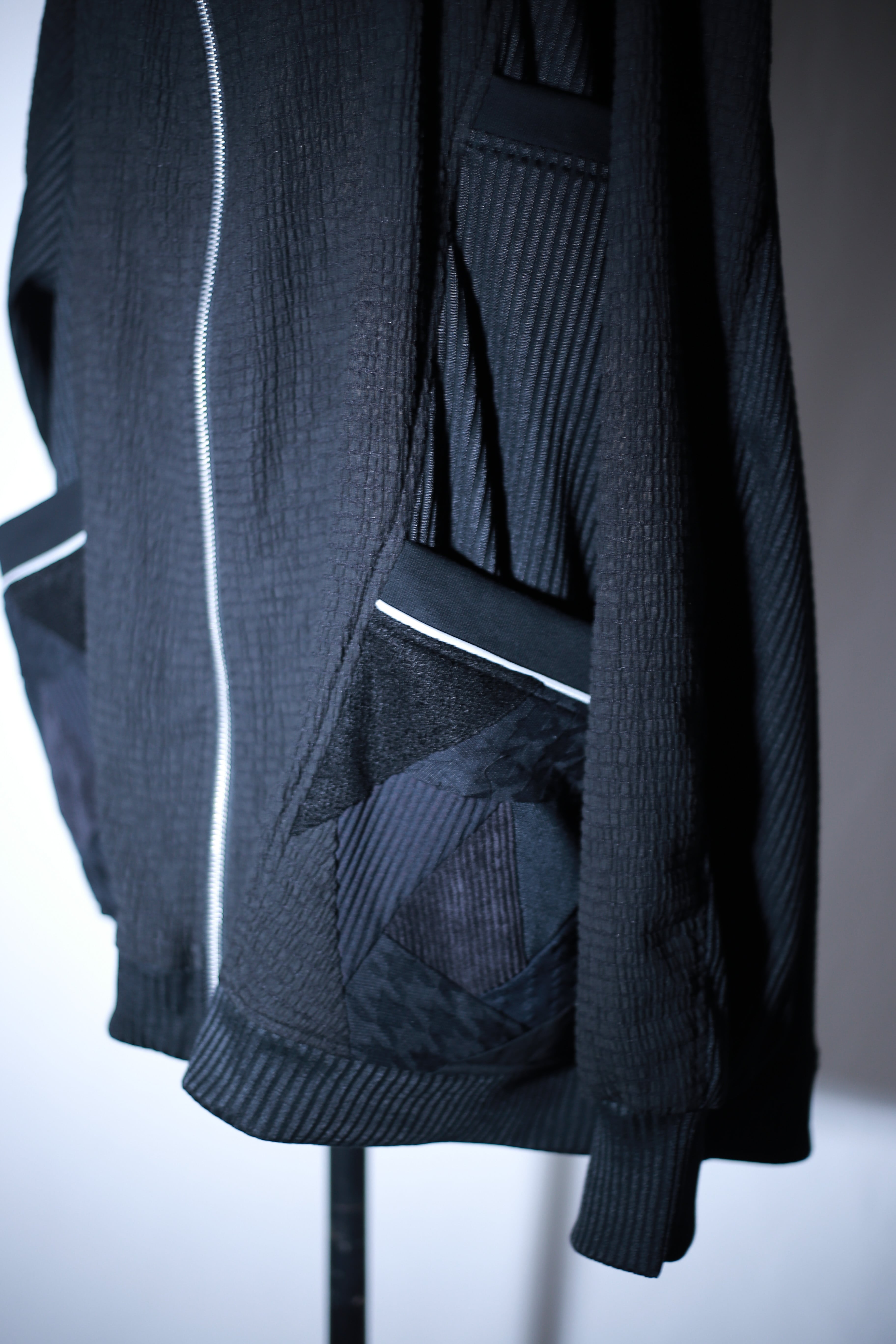 メインに立体的な凹凸感のある透け感のあるニット生地を使用しています。