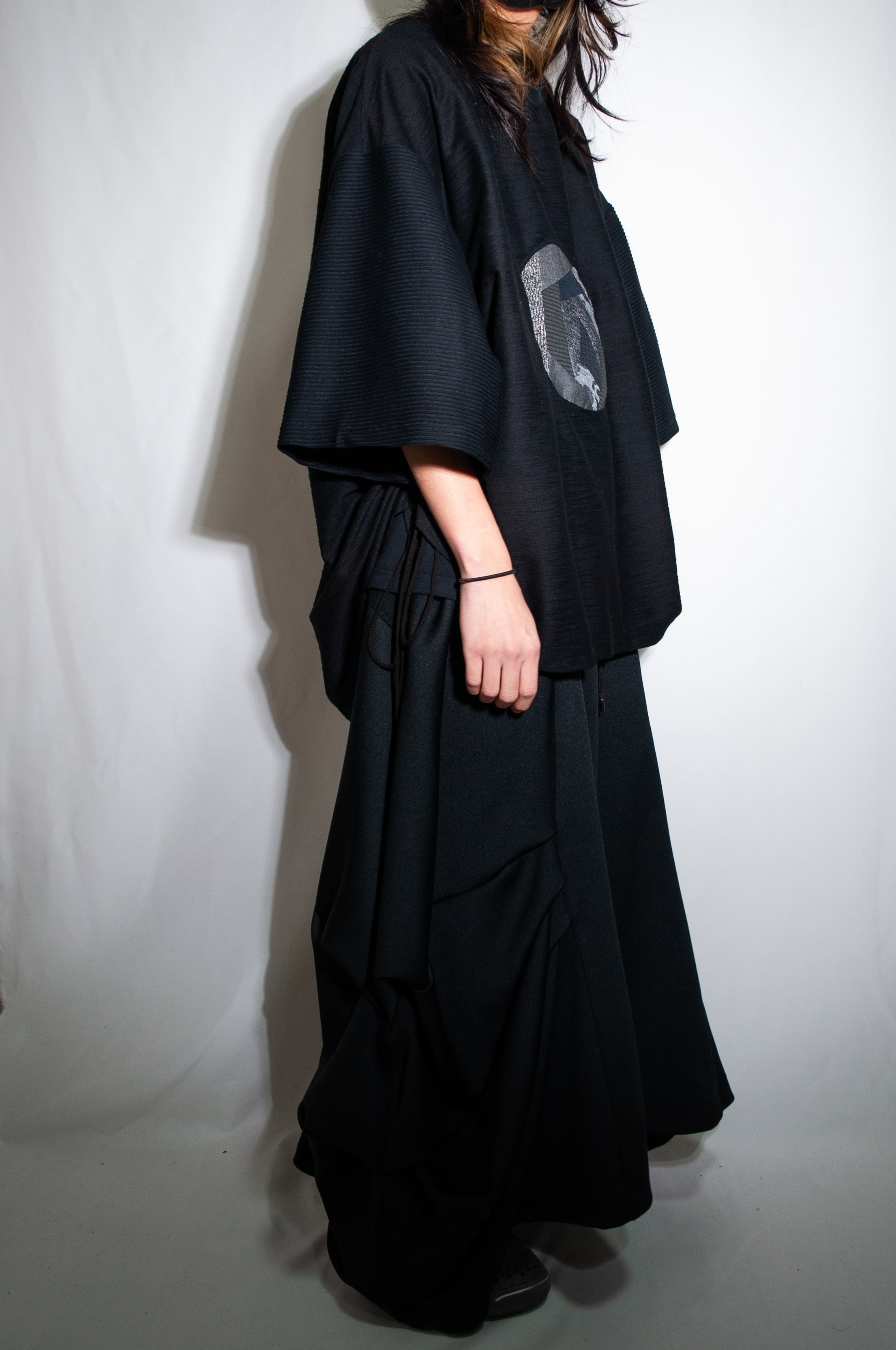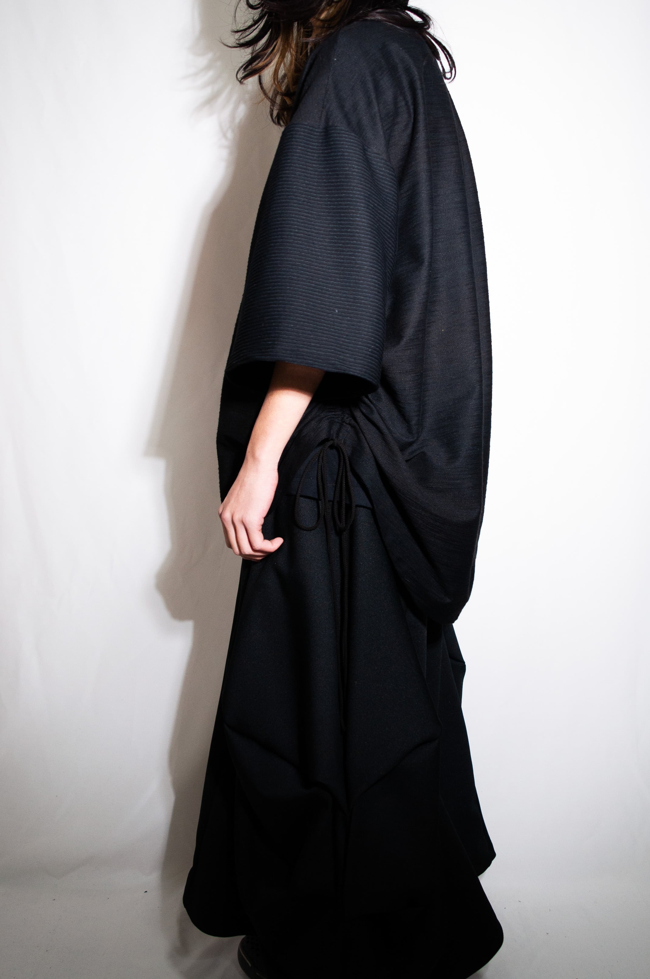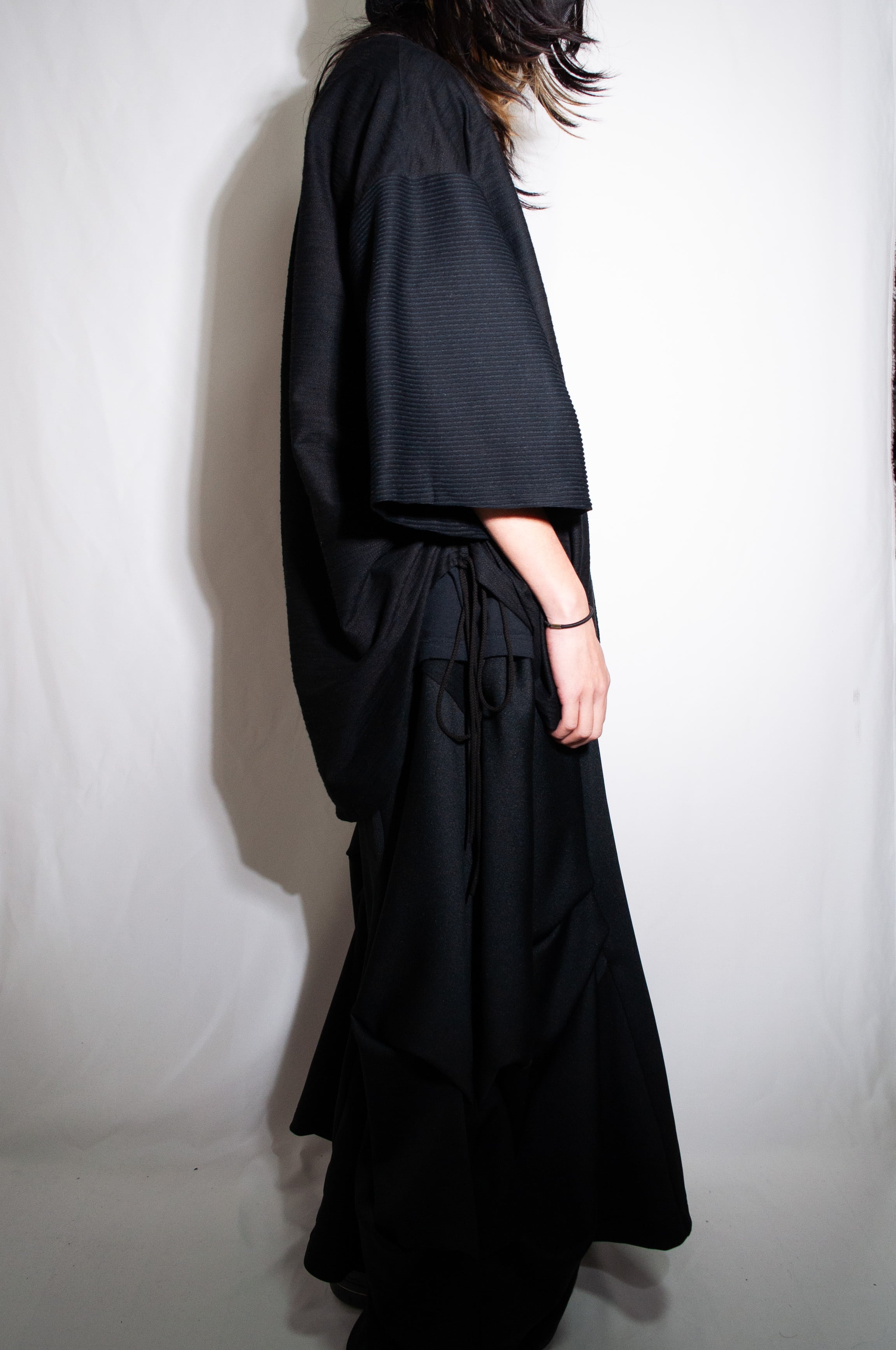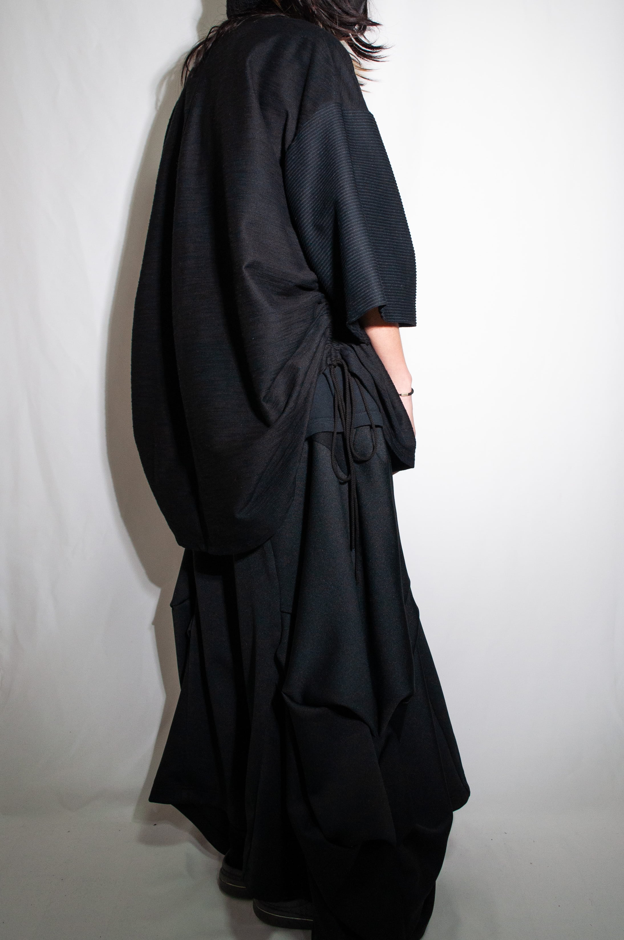 絞ることで好みのシルエットに変化させることができます。