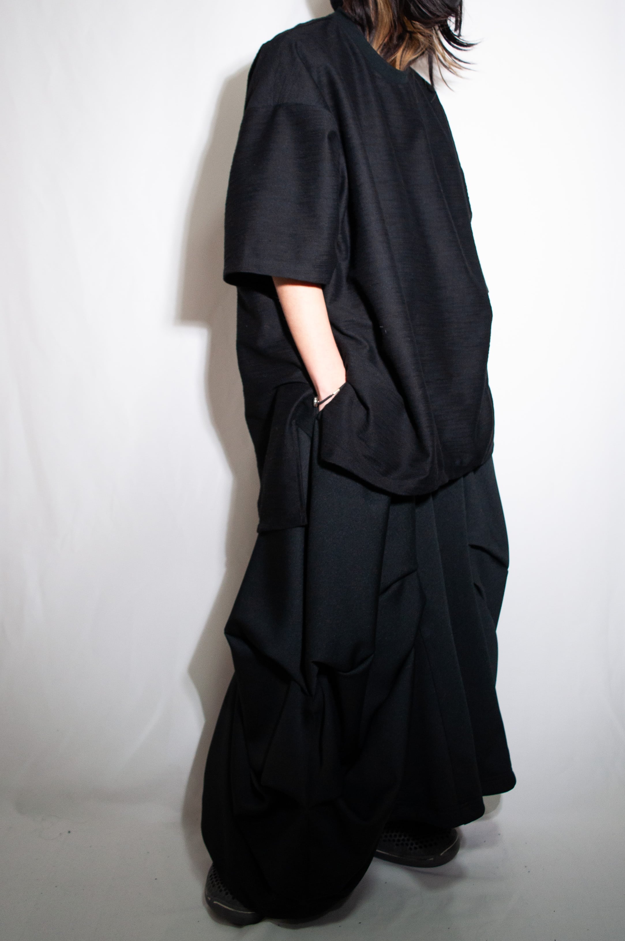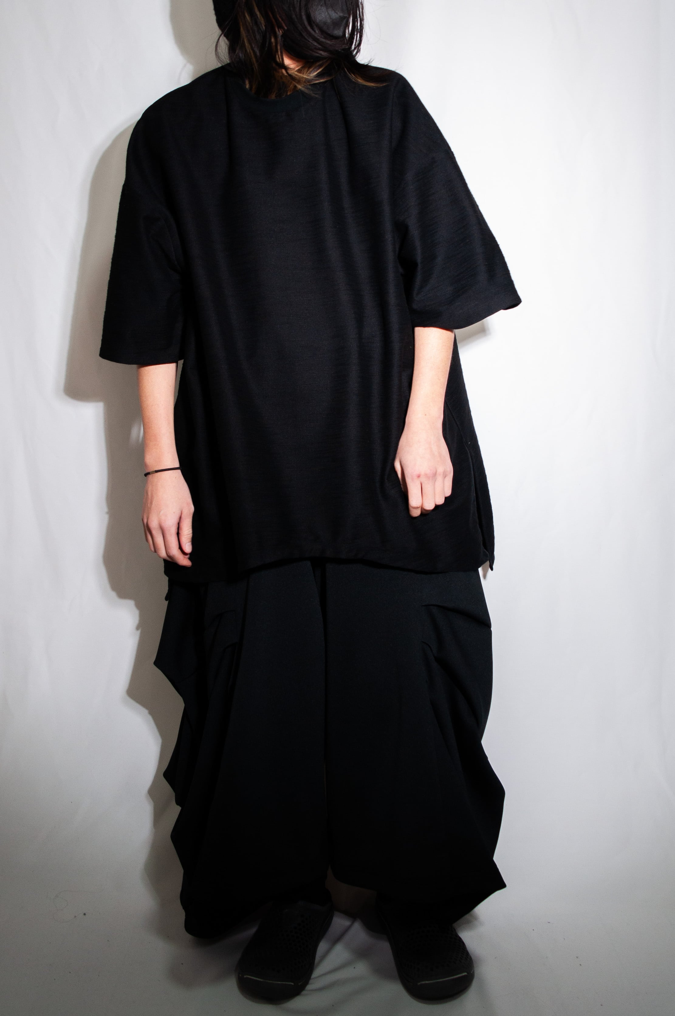 一見シンプルながら、どこか和服のような空気をまとい、動きの中で個性が滲むカットソー。