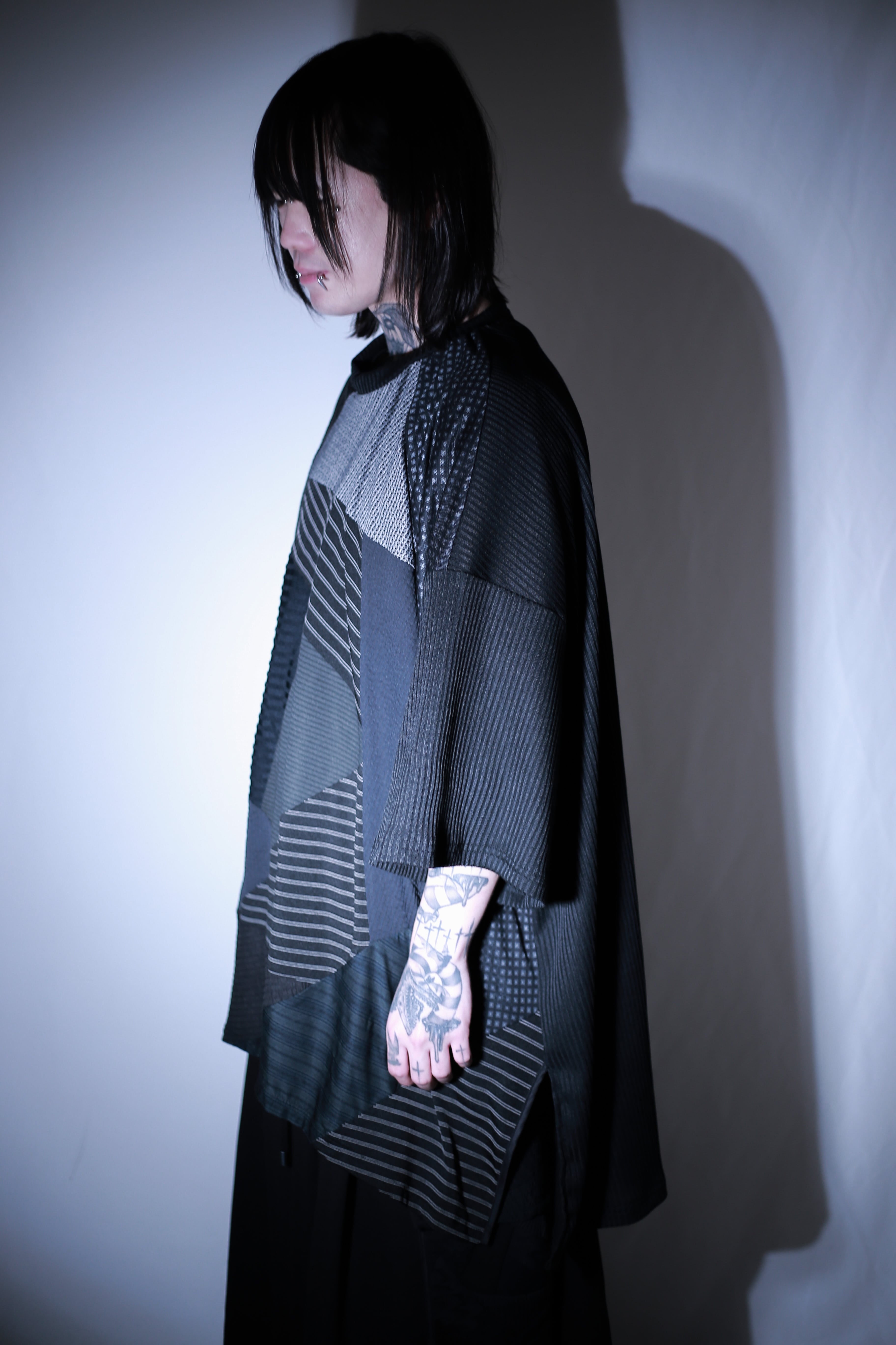 一見シンプルながら、どこか和服のような空気をまとい、動きの中で個性が滲むカットソー。