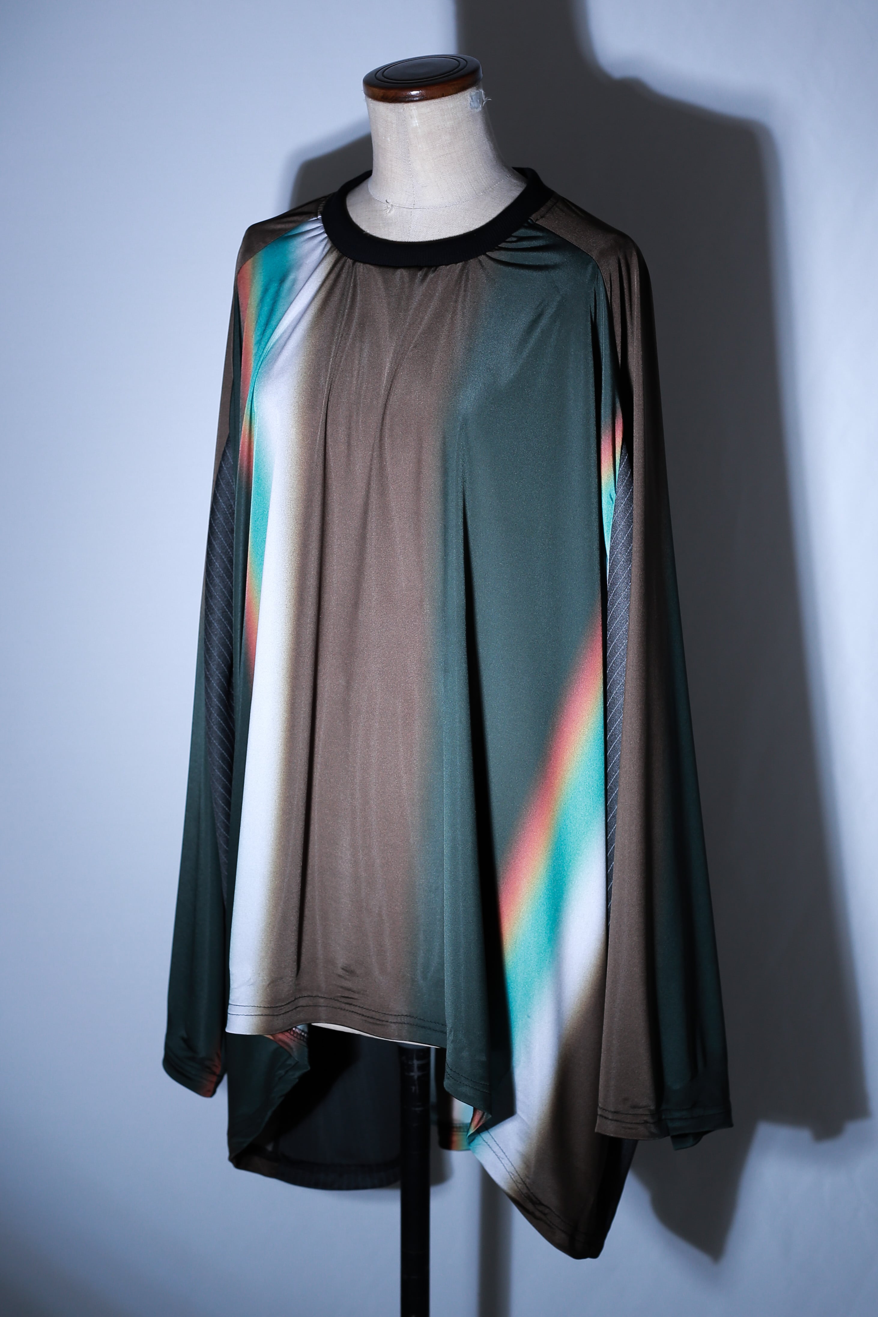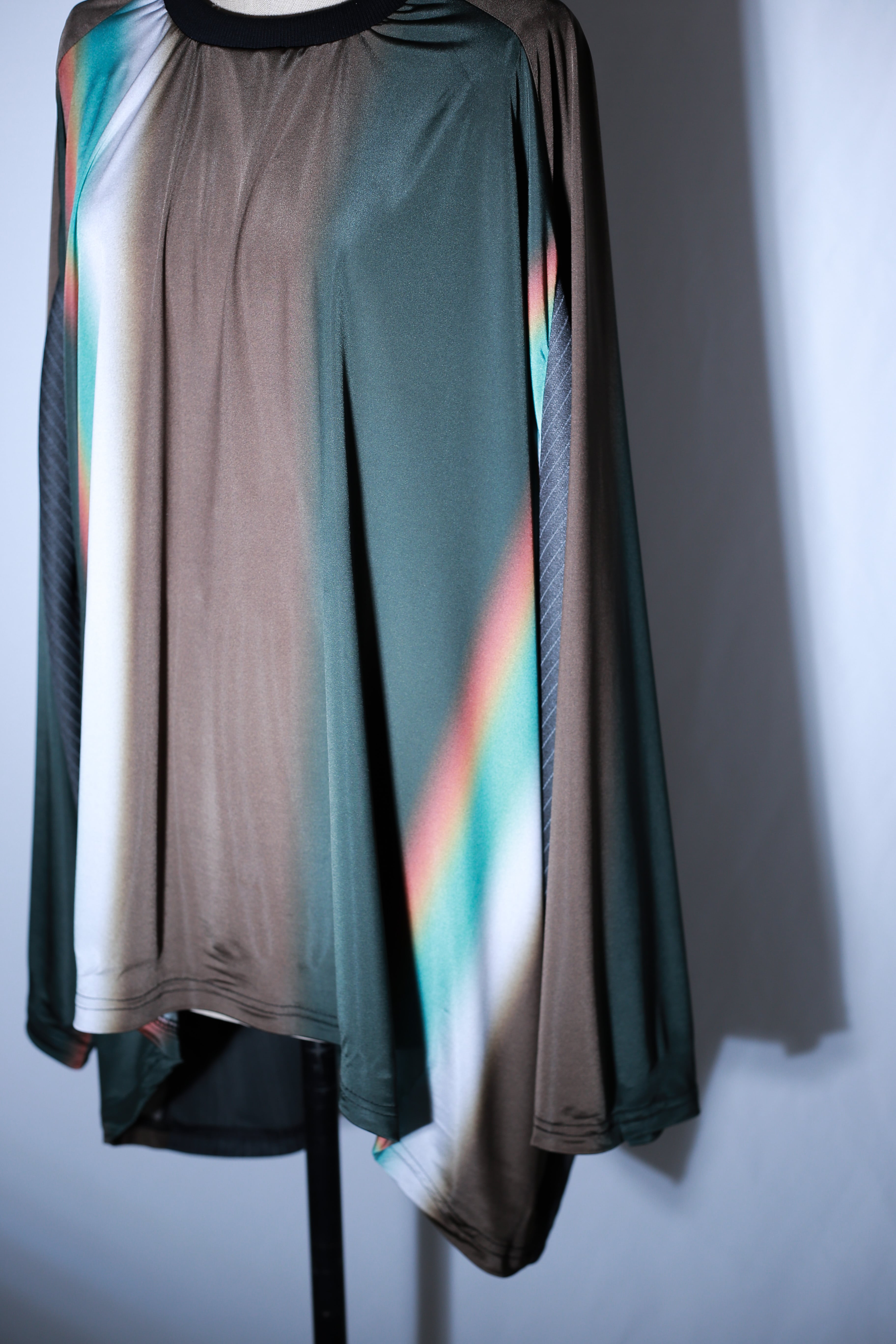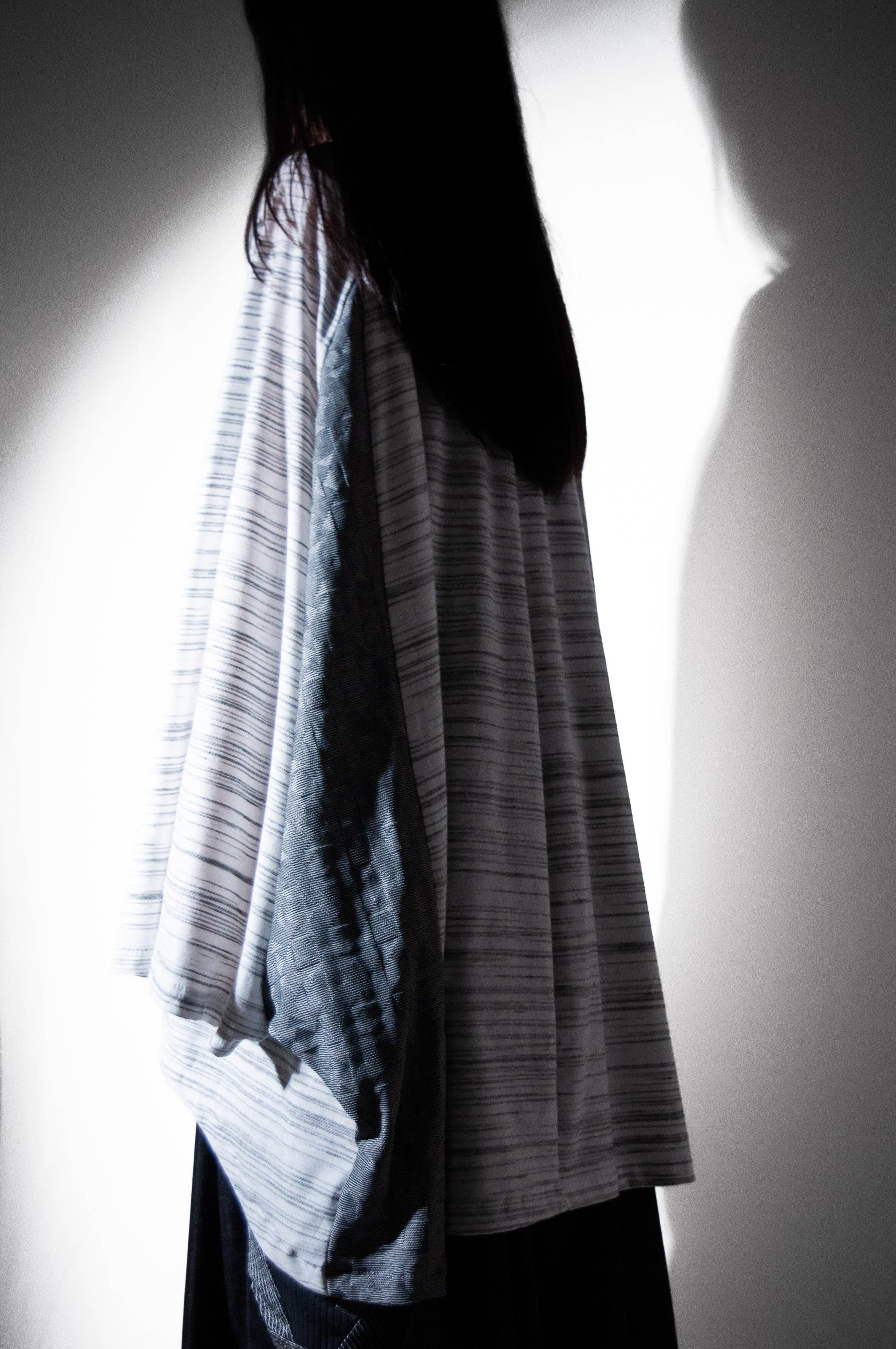 コウモリのような袖と脇のふくらみが、身体に寄り添いながら