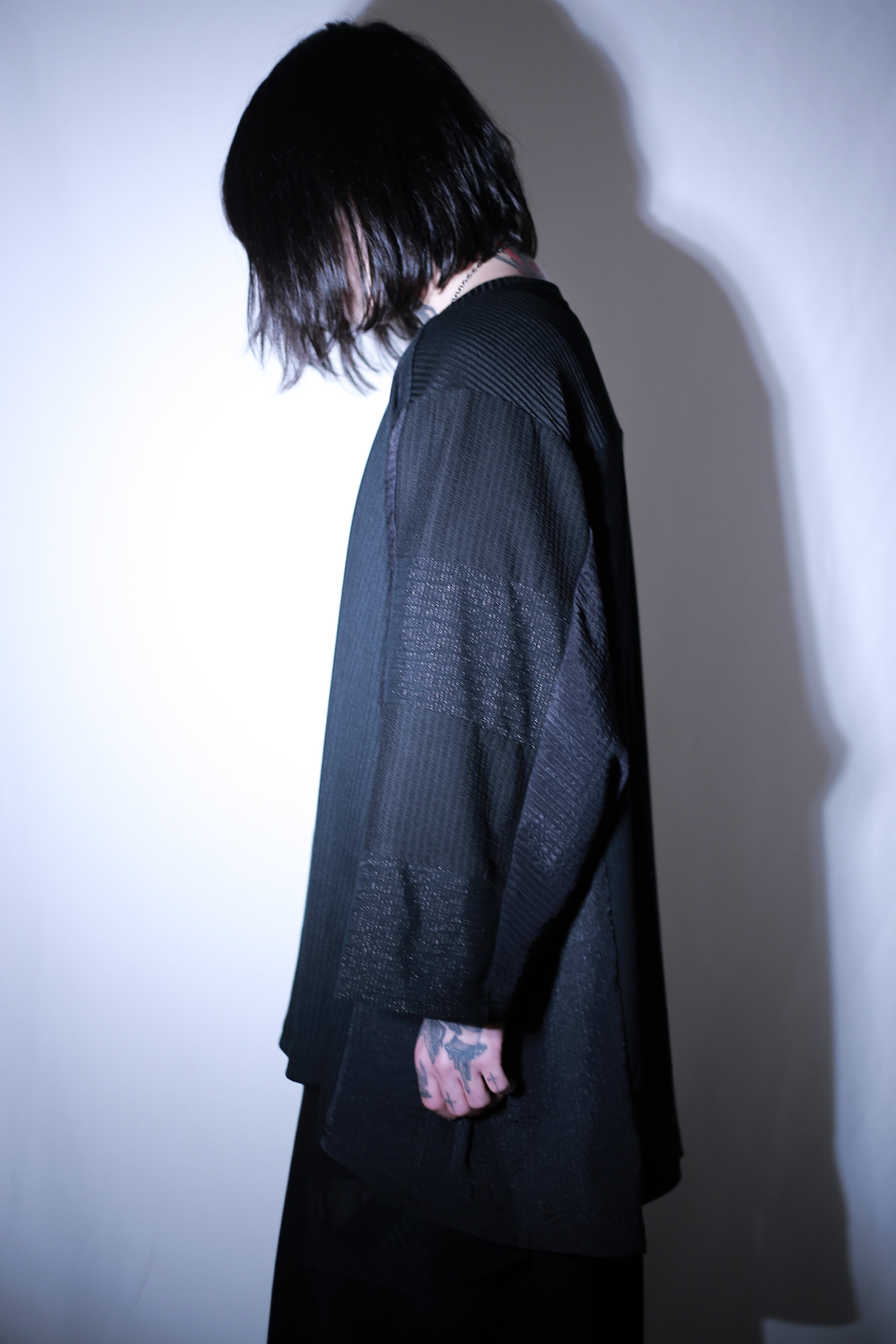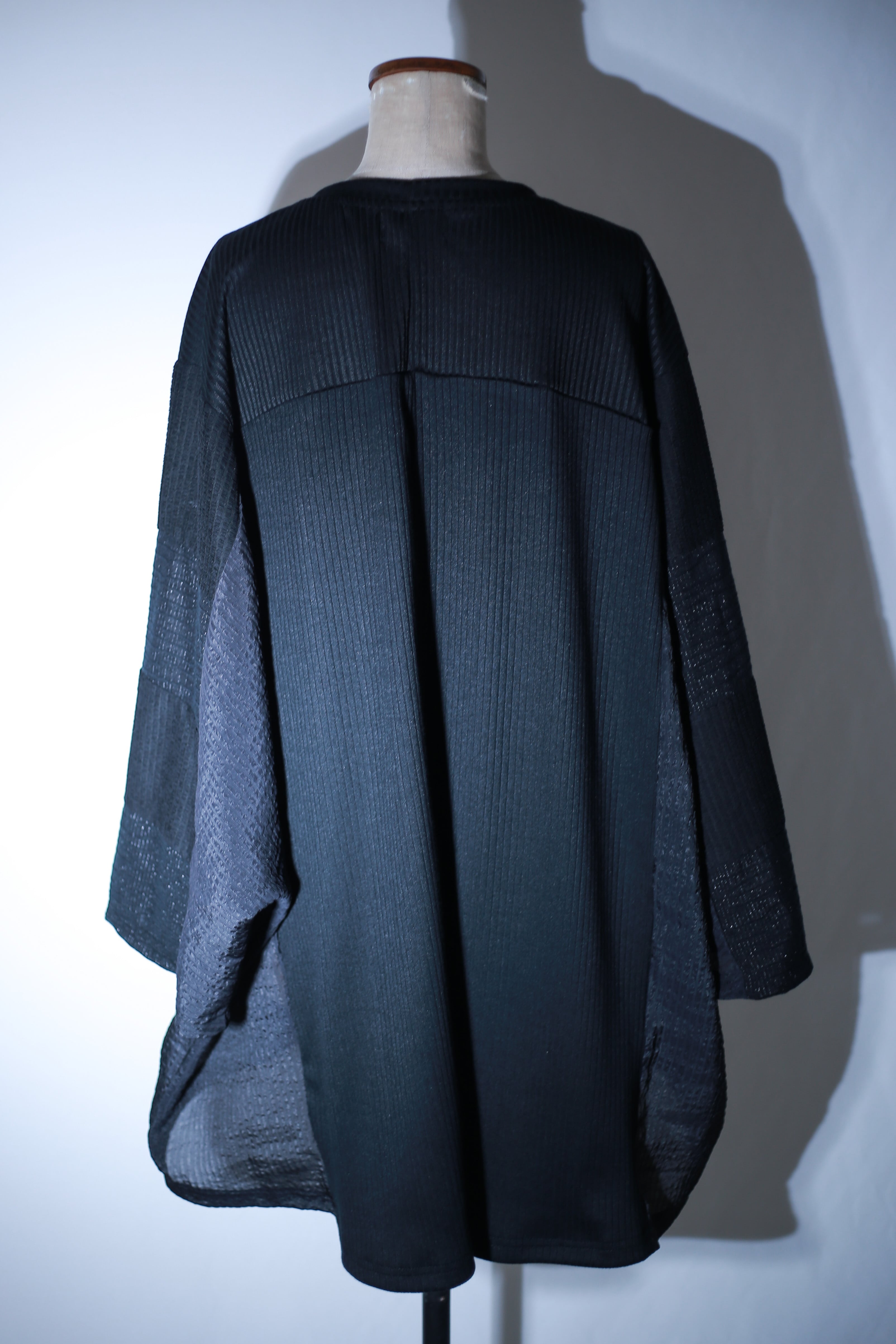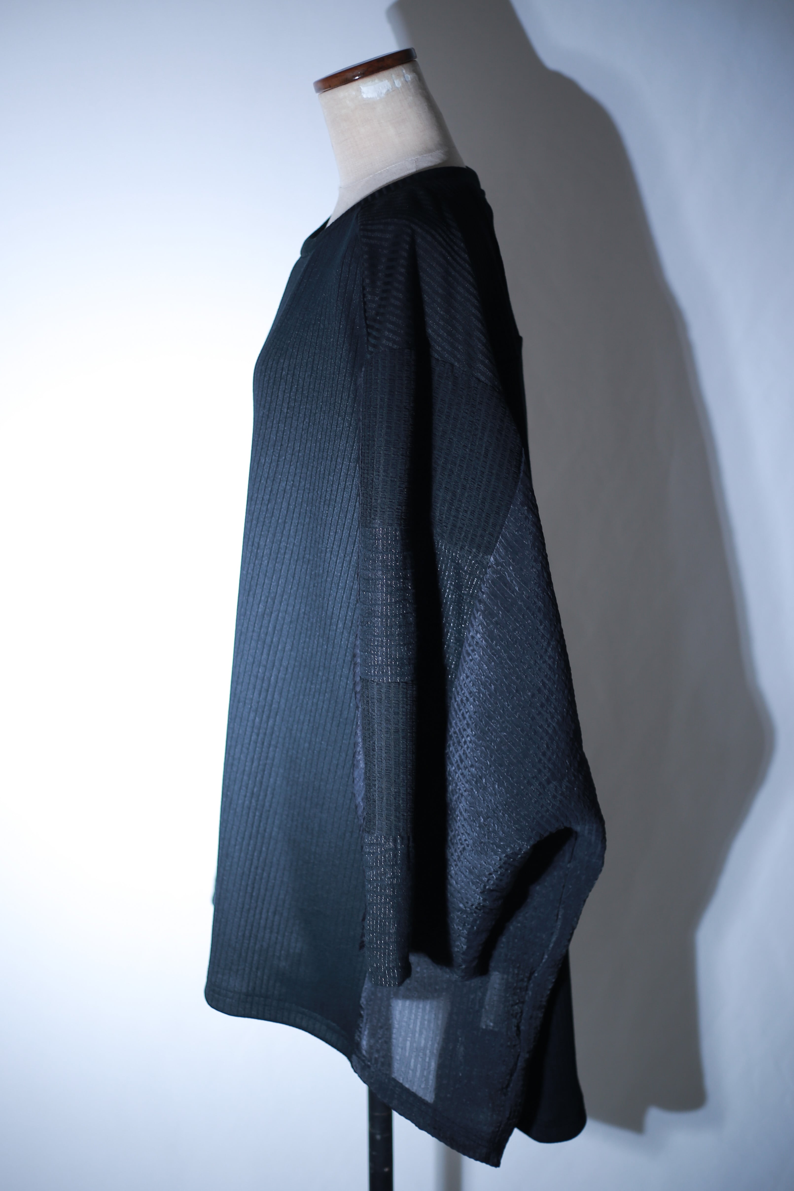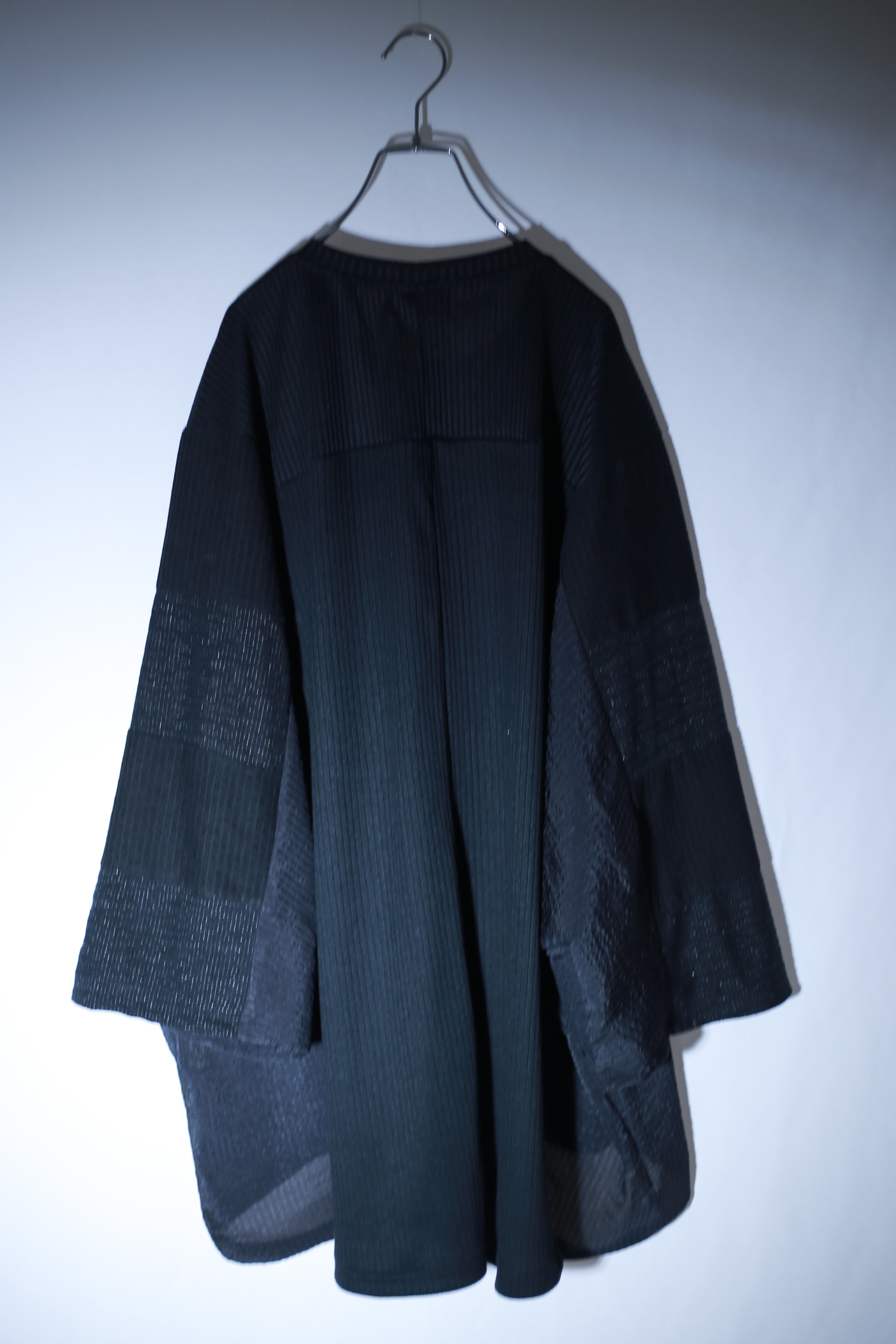 袖部分は2種類の異素材を重ねて構成しており、ボーダーのような切り替えが特徴。
