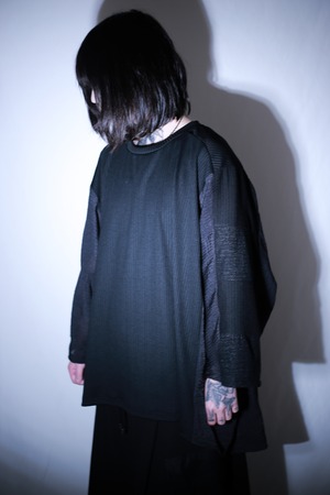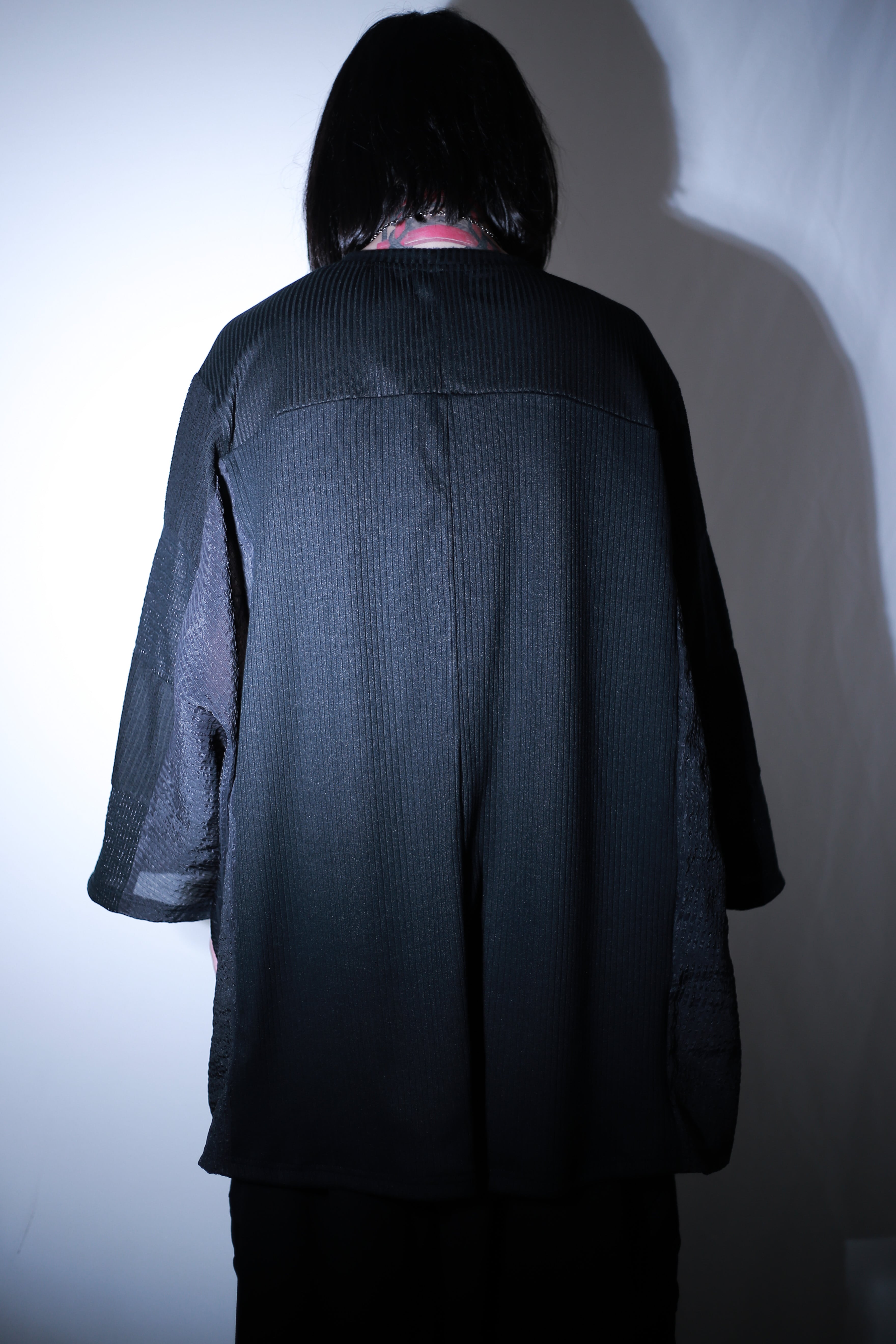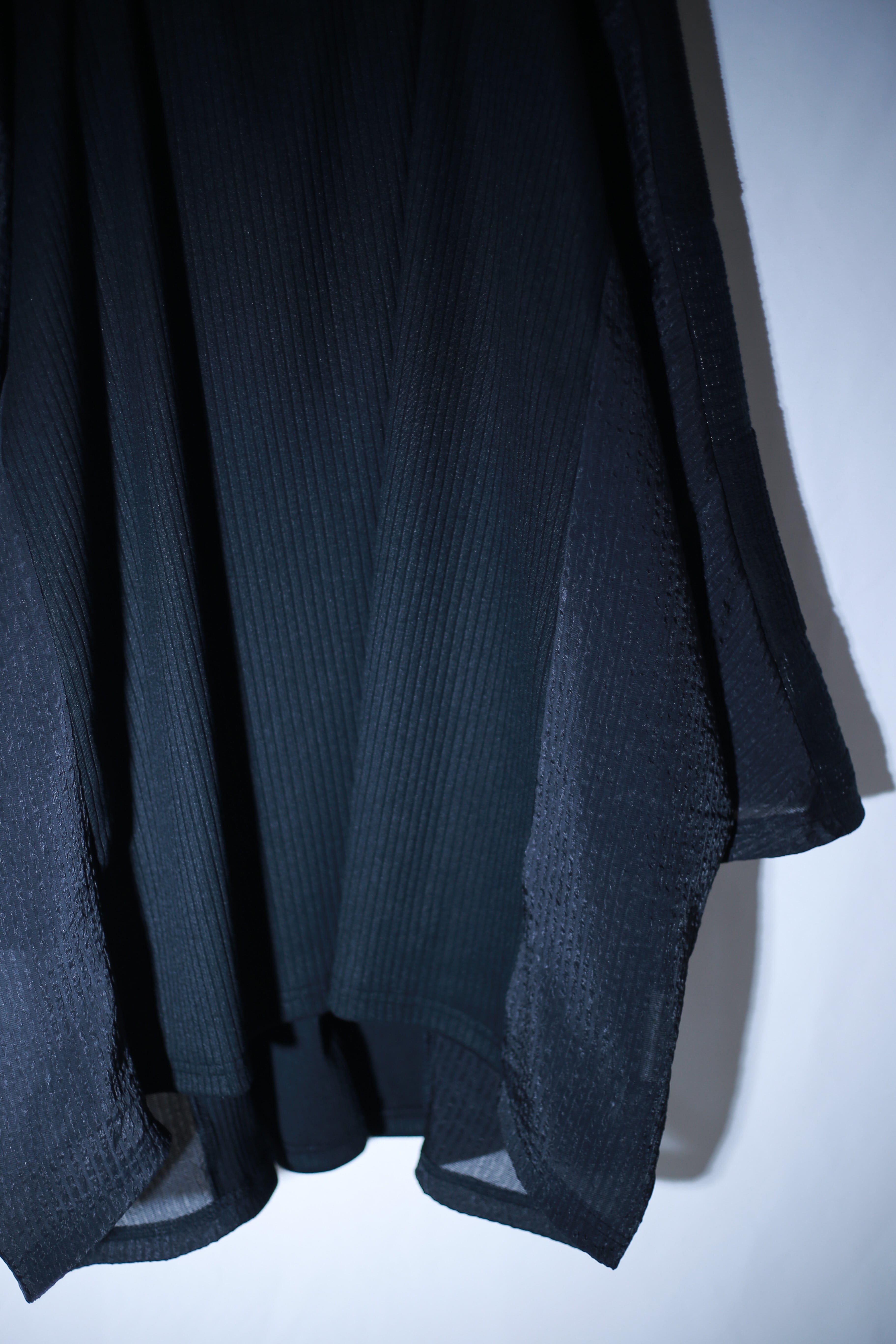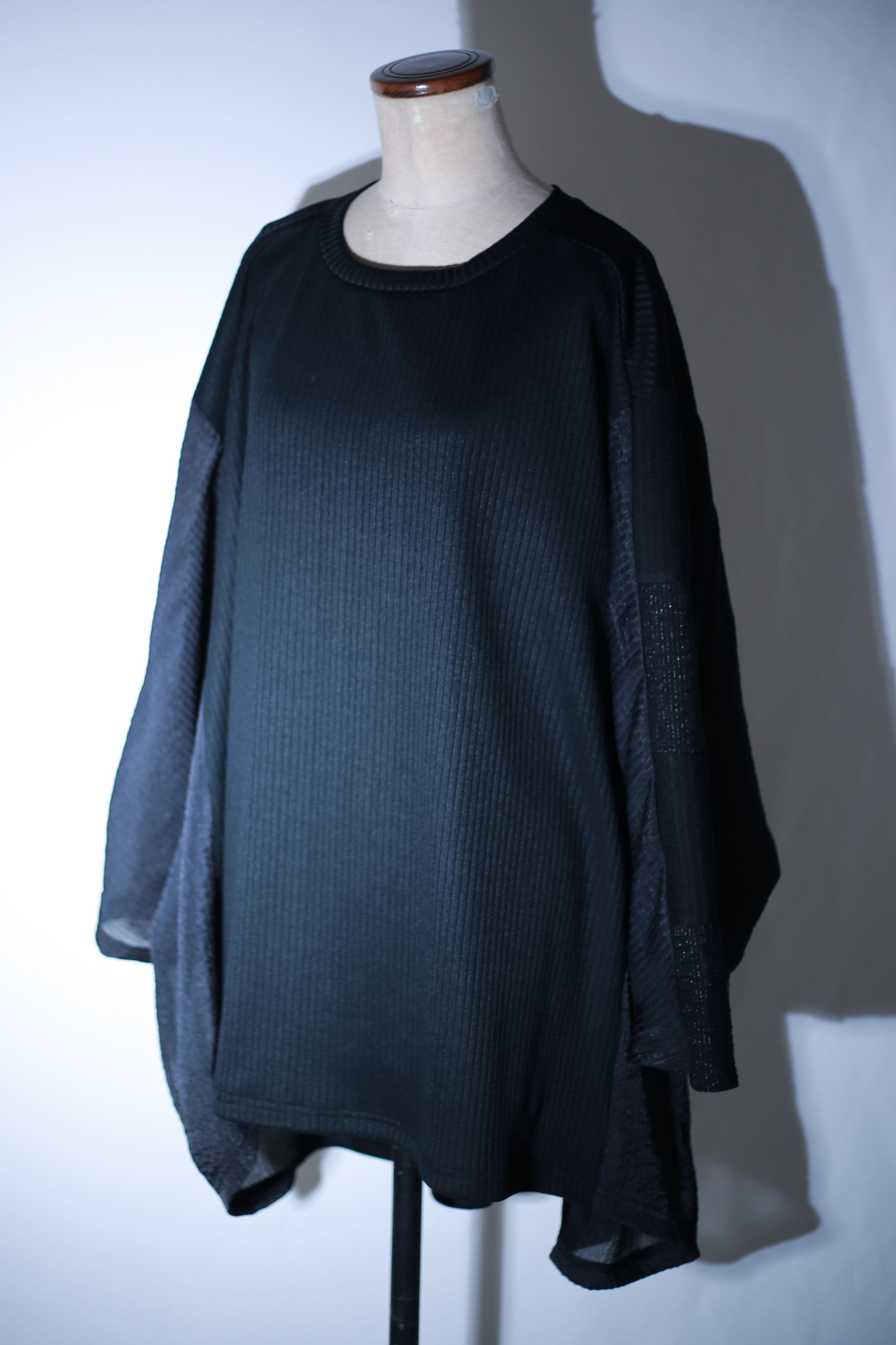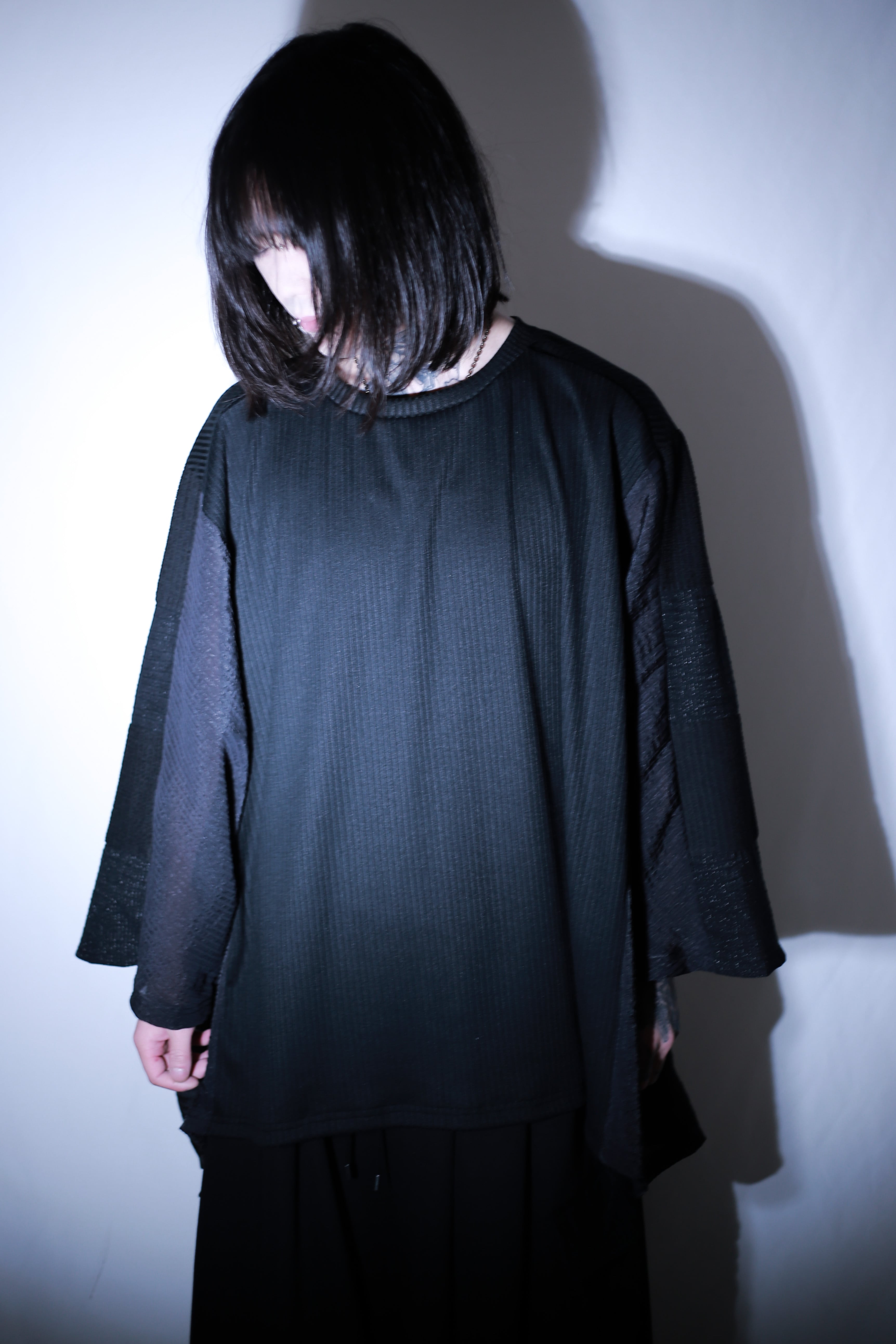袖部分は2種類の異素材を重ねて構成しており、ボーダーのような切り替えが特徴。