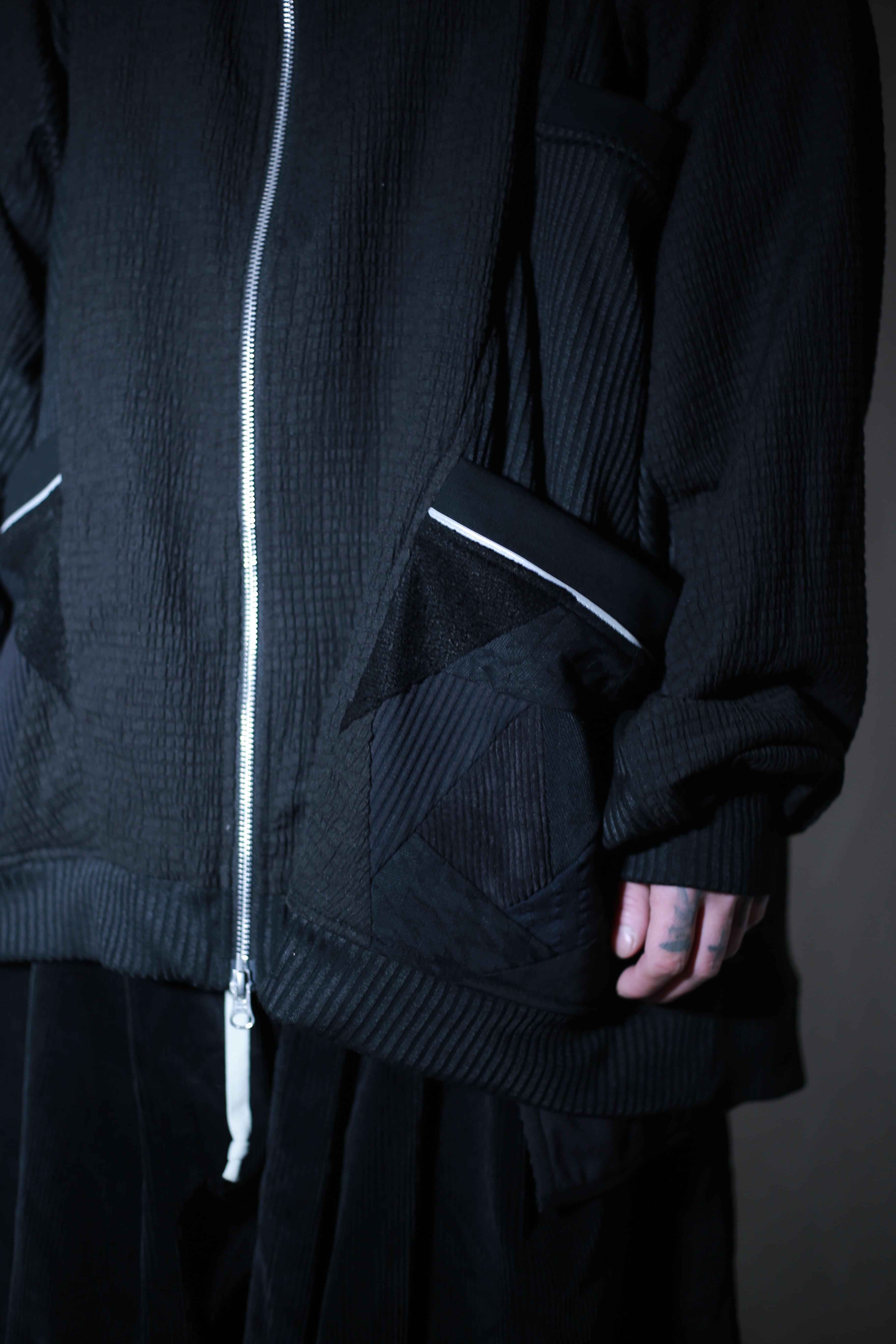メインにやや薄手のハリ感のあるポリエステルニットを使用しています。