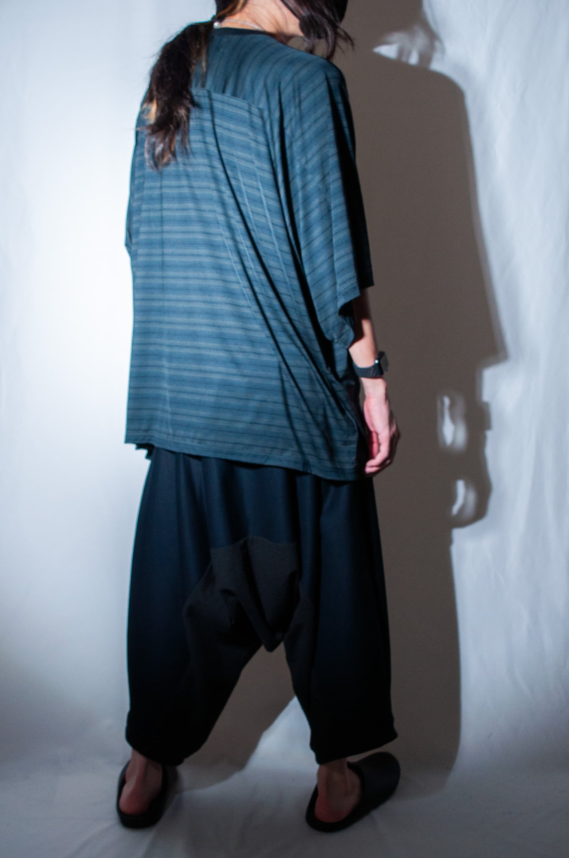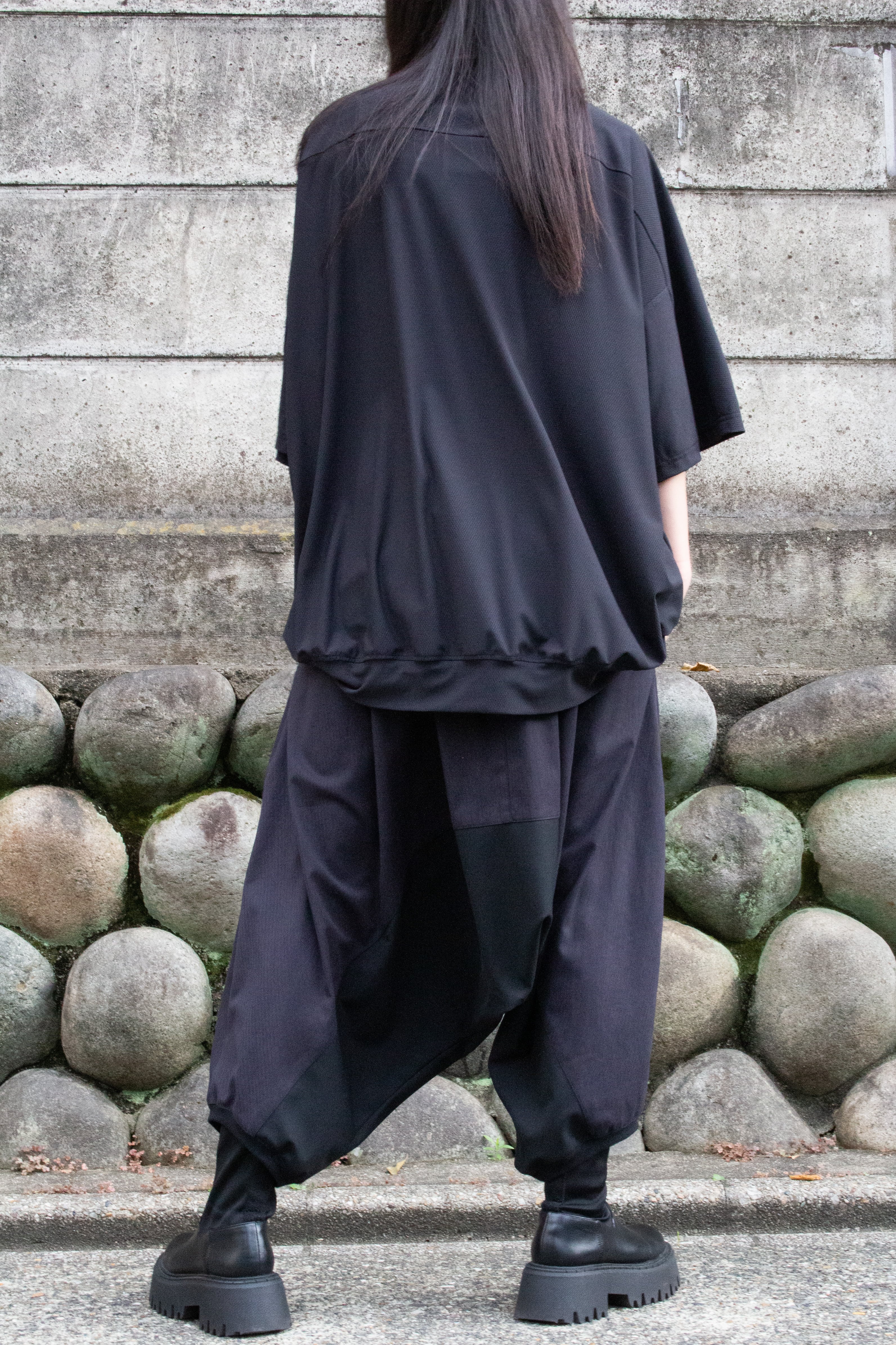カクレミでは珍しいサルエルパンツは股下をかなり深くしており立体的なシルエットが生まれます。