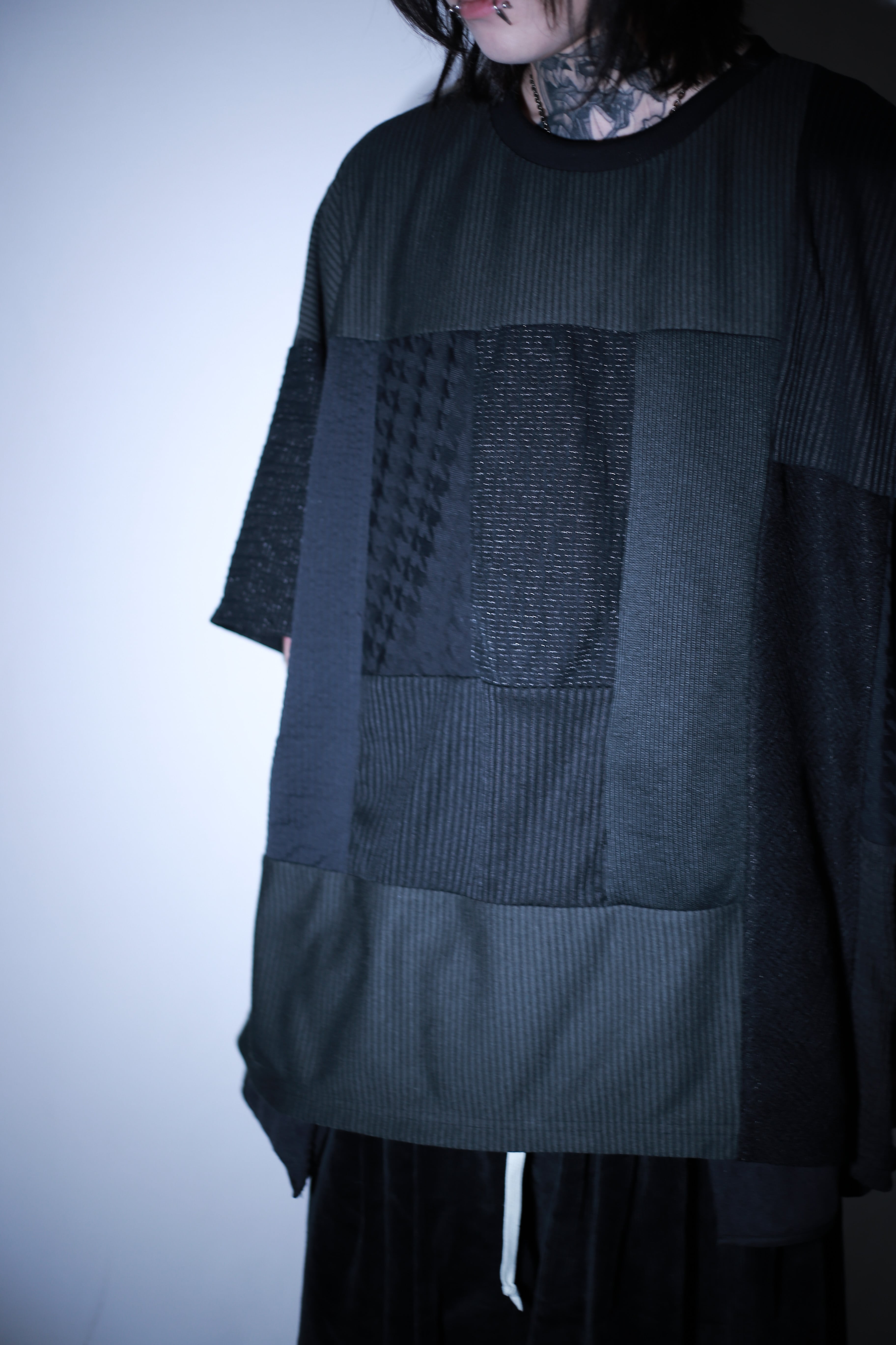 直線の渦のようなパッチワークが特徴的なデザインで様々な生地を使用しています。