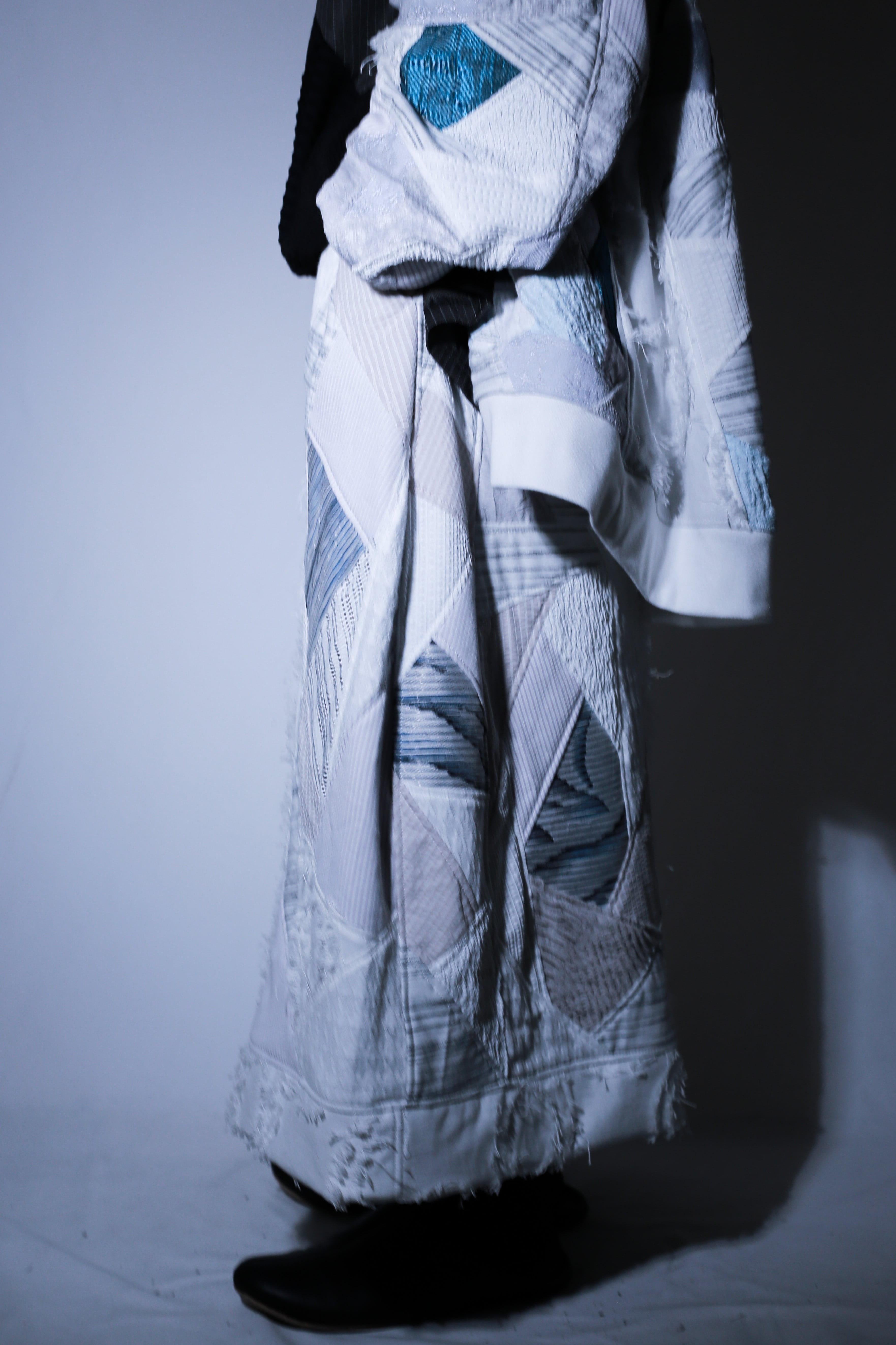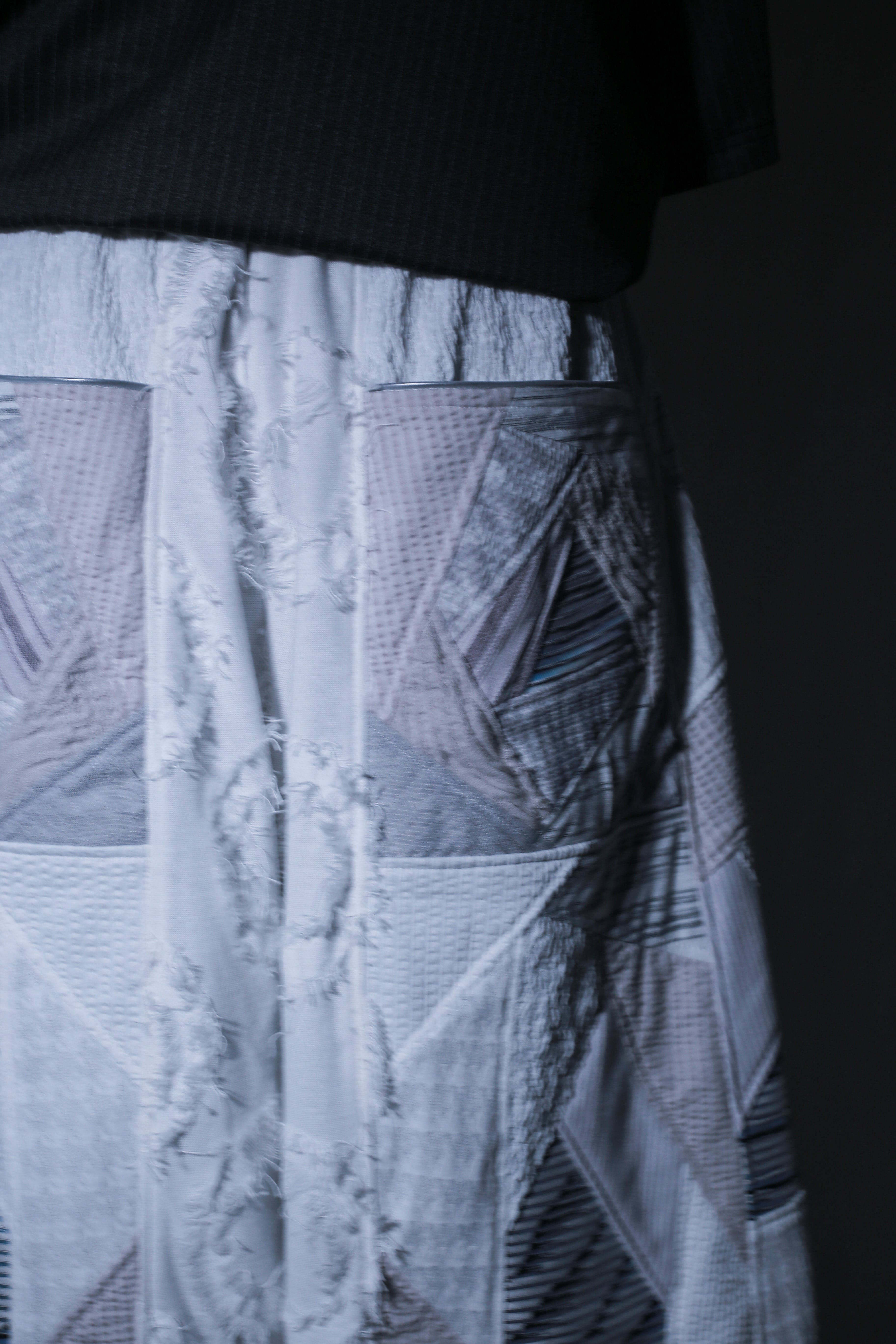 バックの切り替えにポケットがあります。アクセントとしてポケット部分にリフレクトテープを挟み込んでいます。