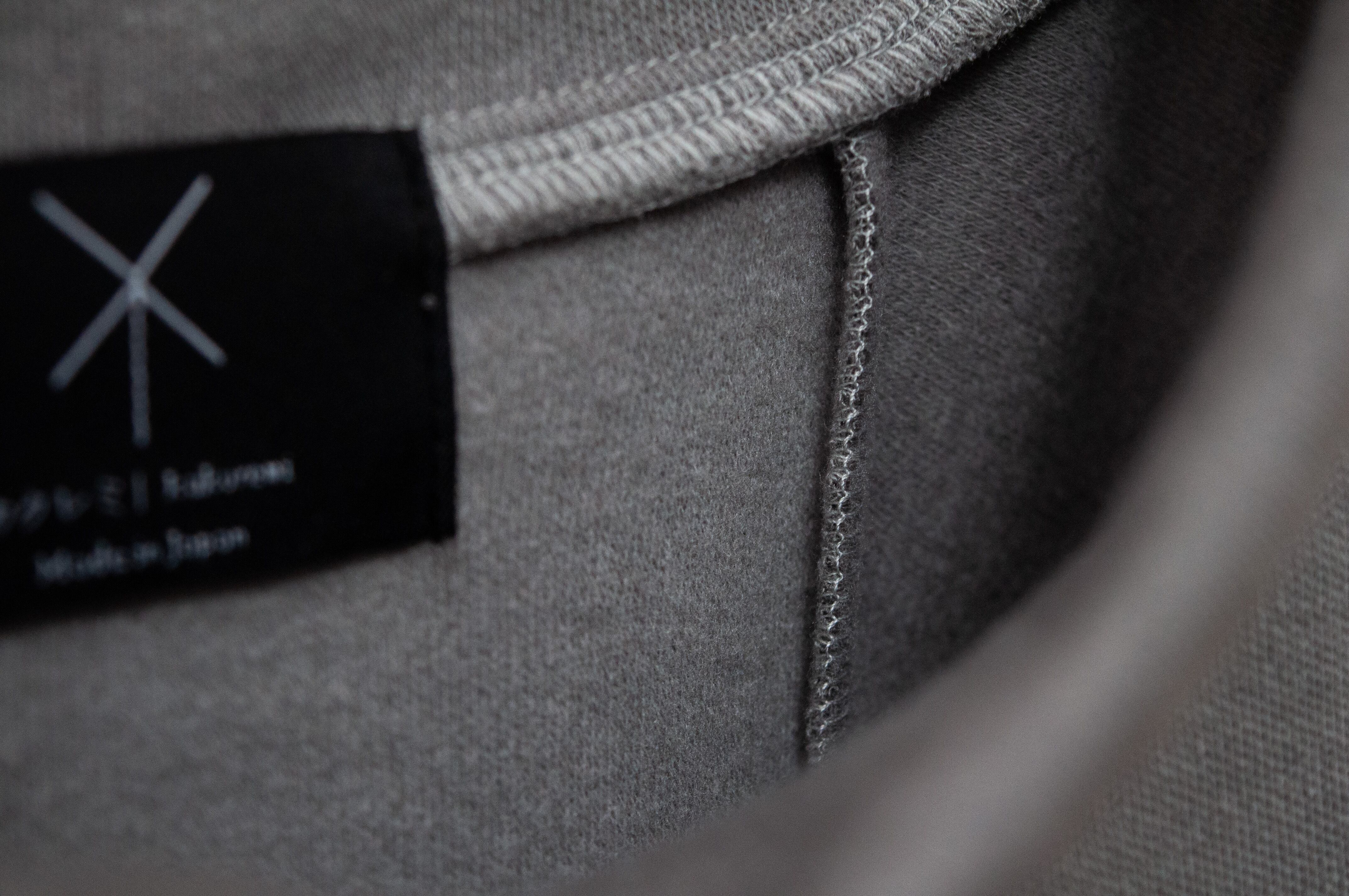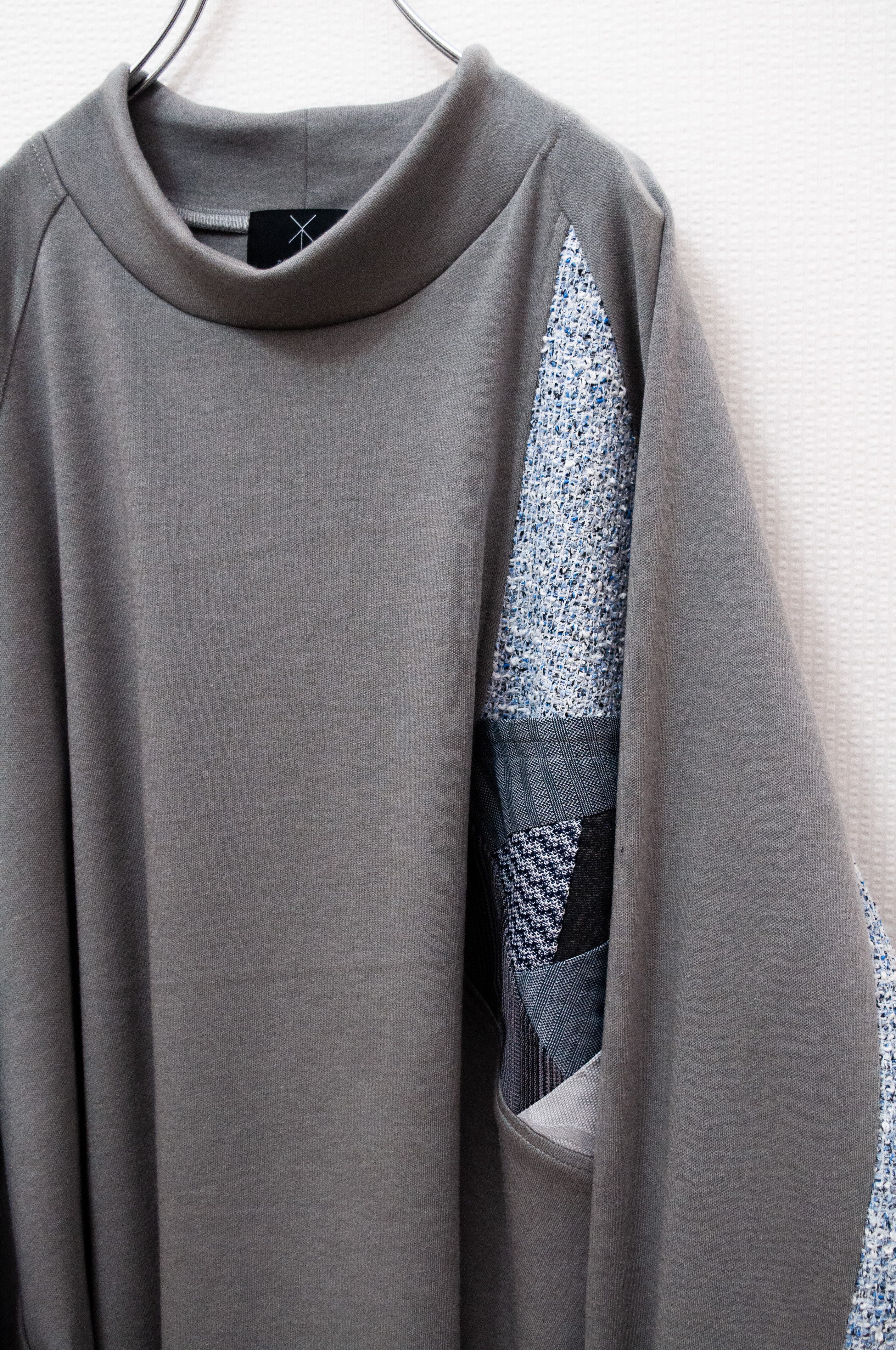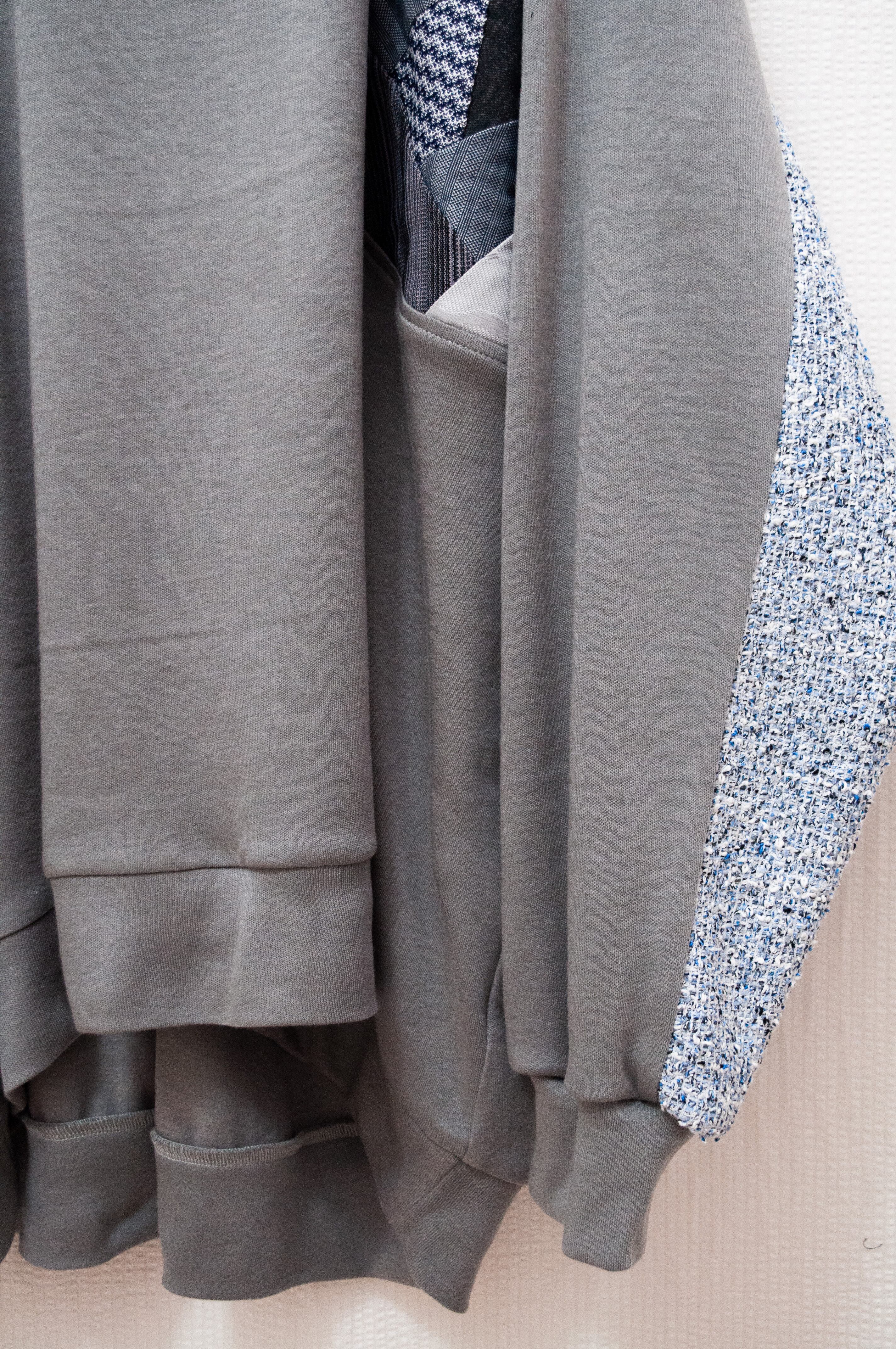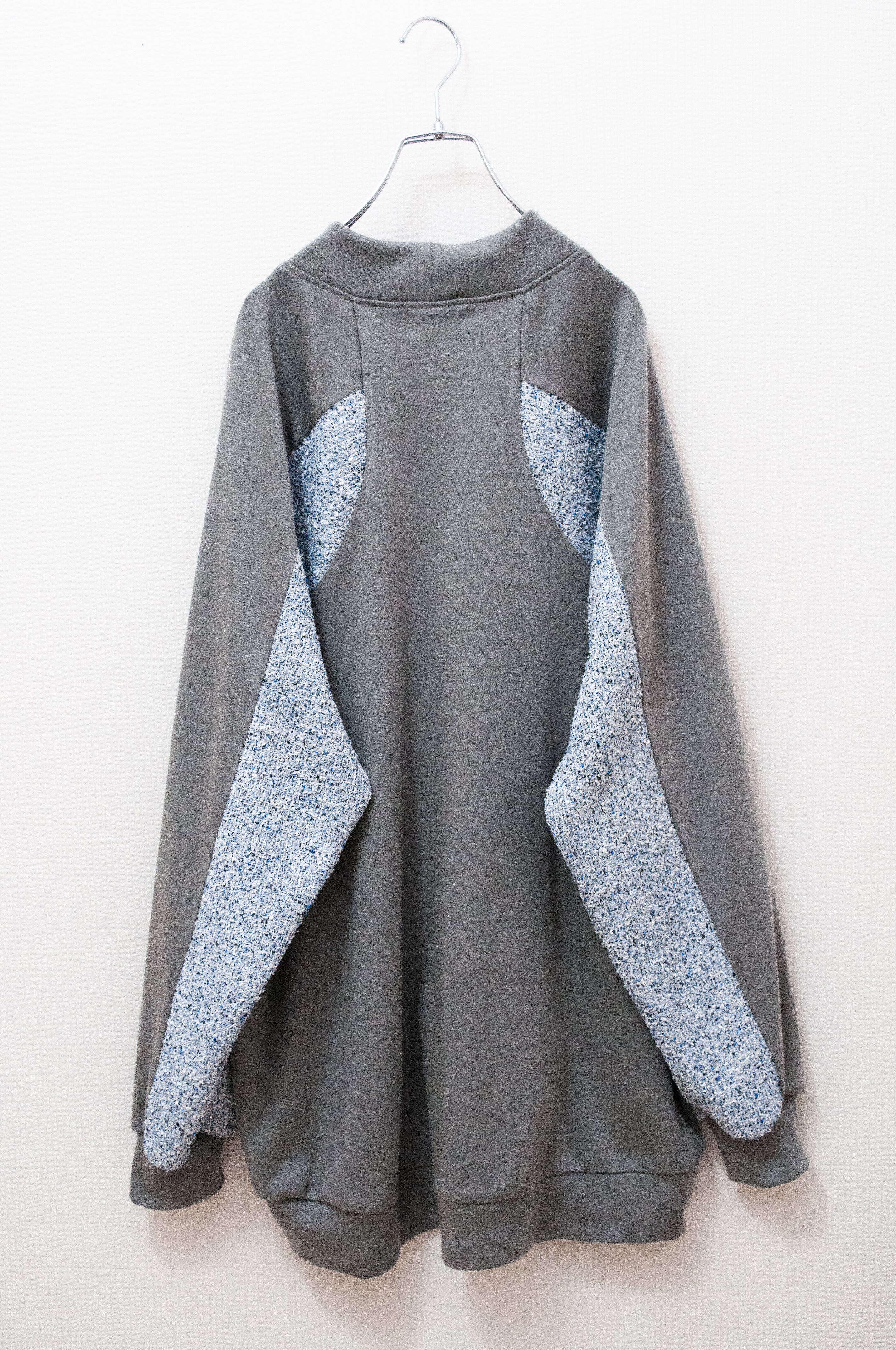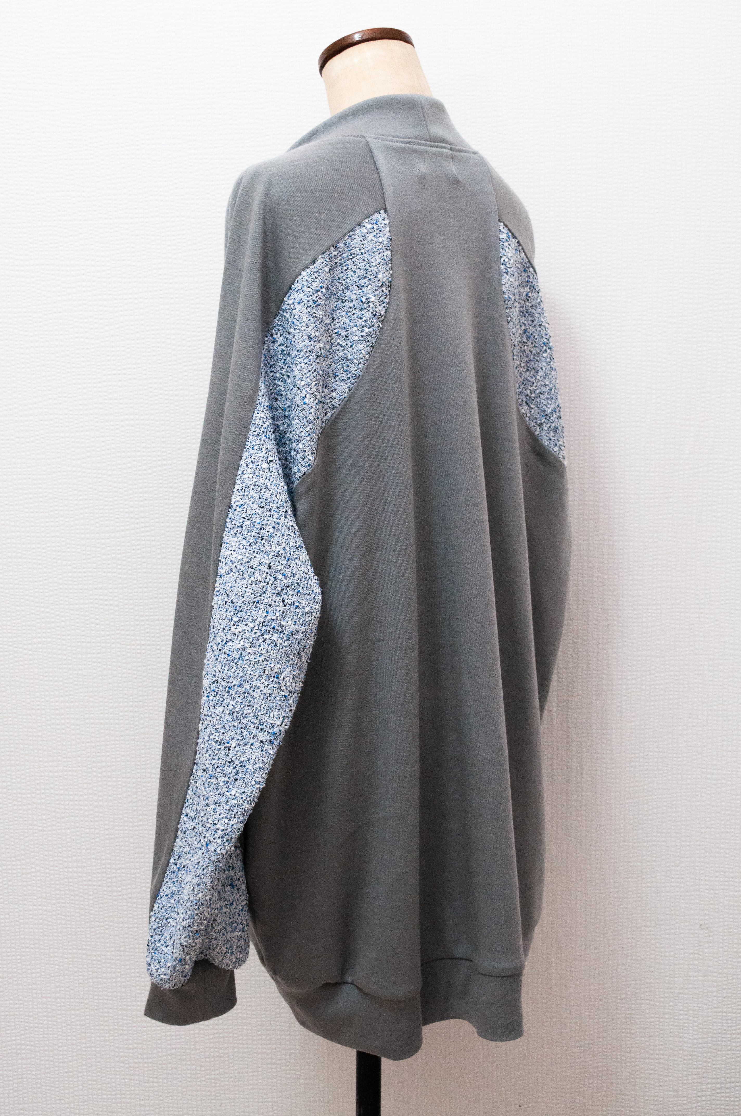 青部分の生地は数種類の糸を織り合わせたメランジニットを使用しています。