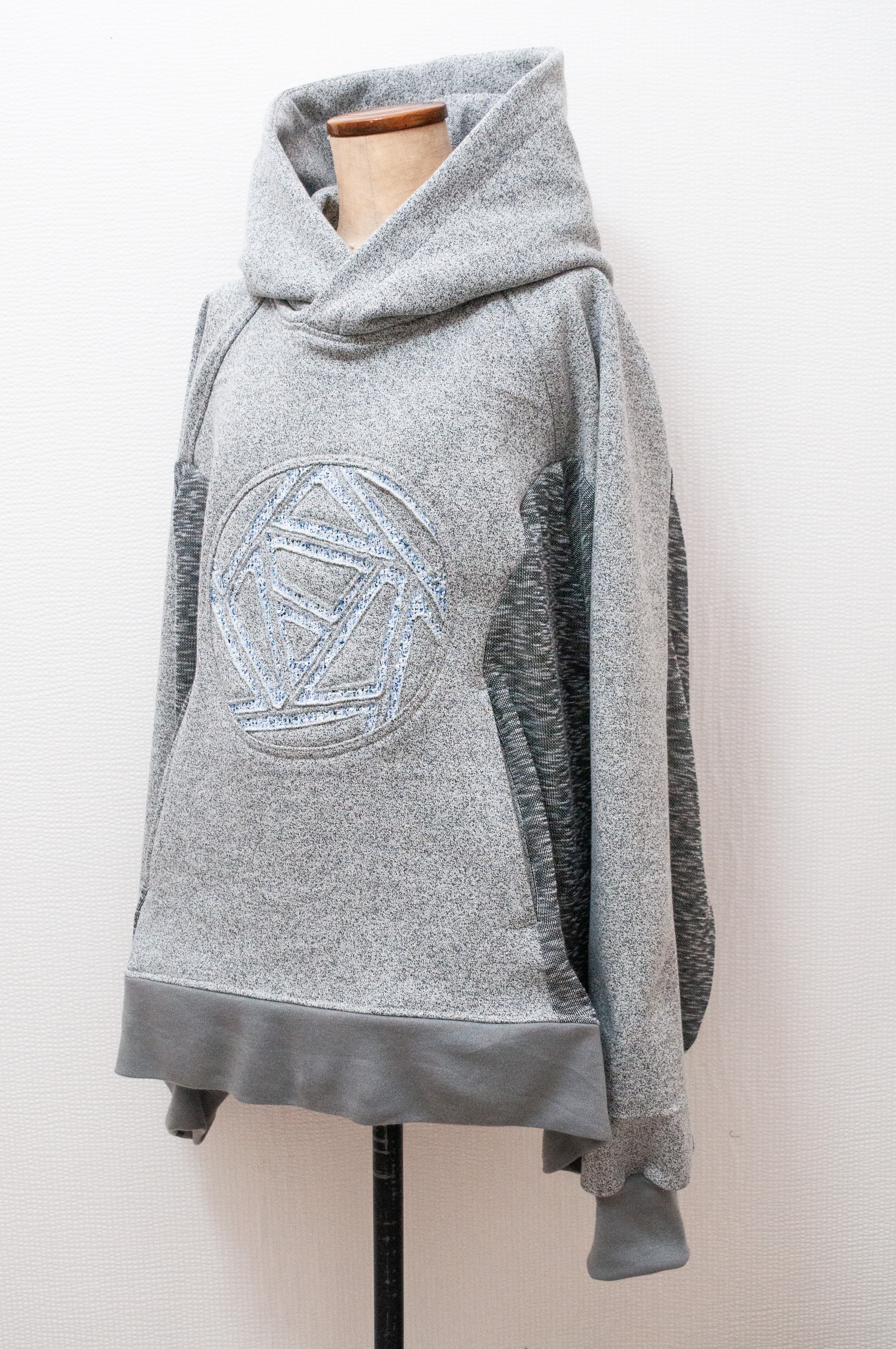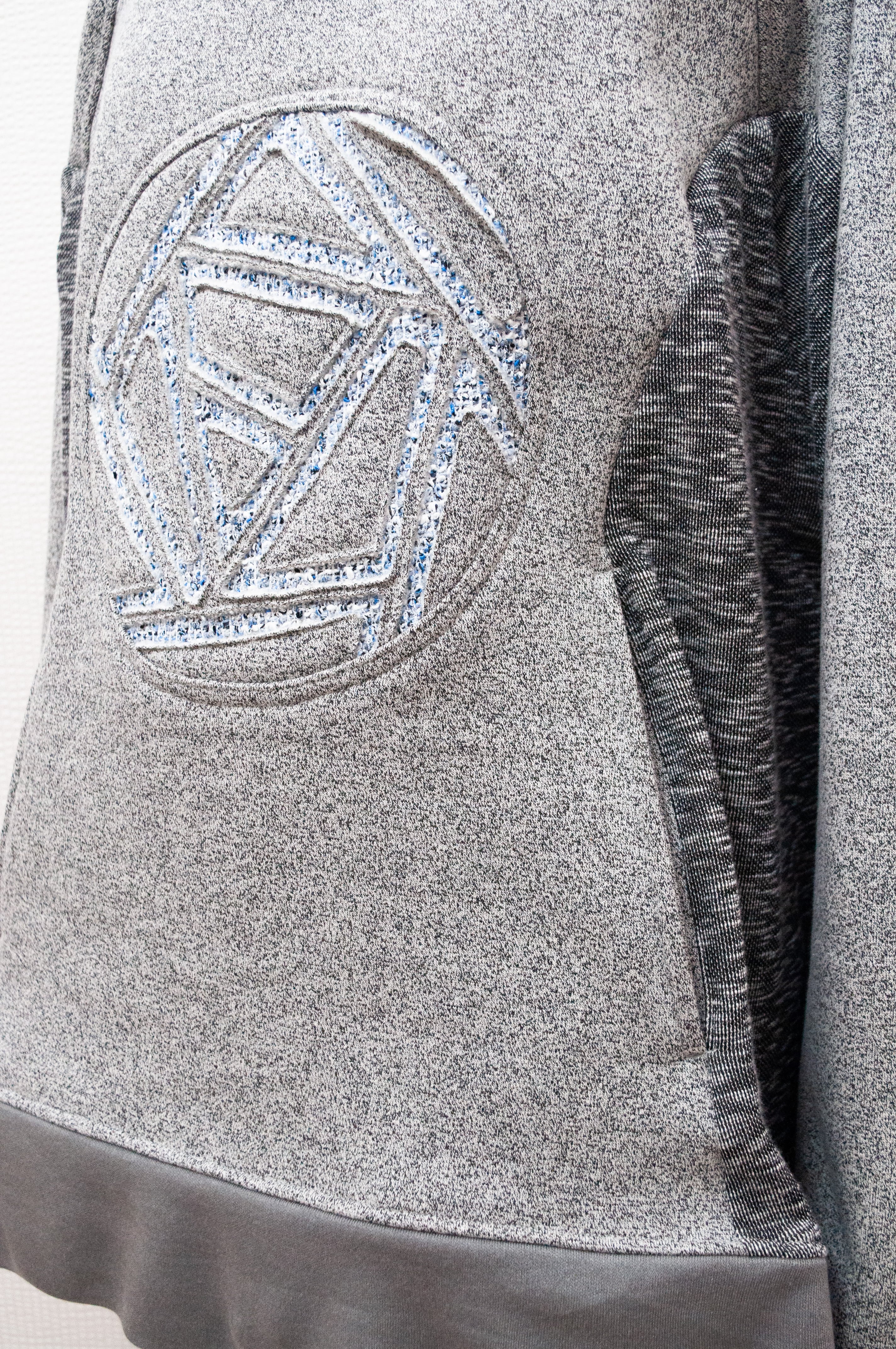 カンガルーポケットを採用しておりますがすっきりとしたシルエットを求めていたため裏側にポケットを配置しています。