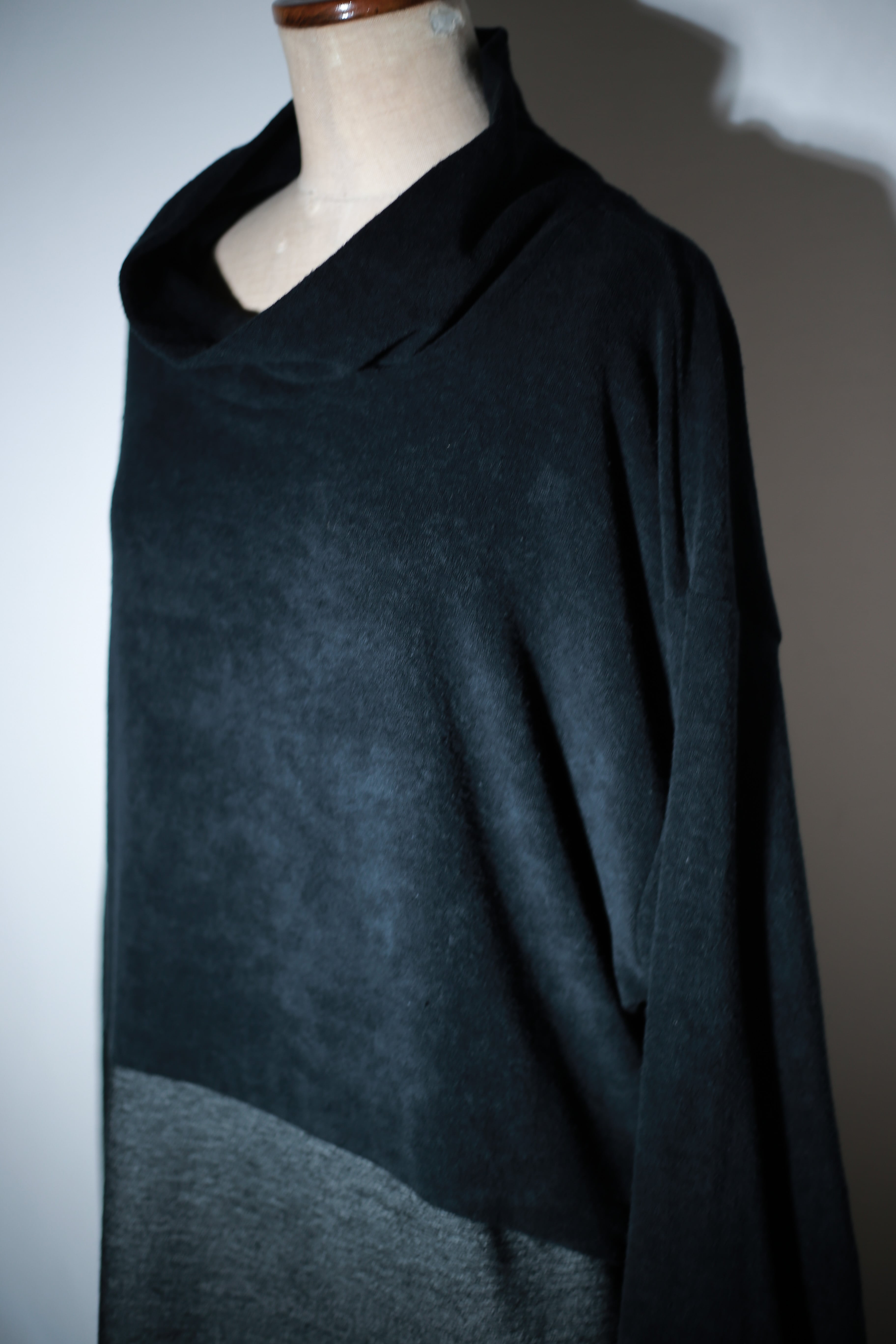 ゆったりとしたボリュームのあるハイネックが特徴の一着。