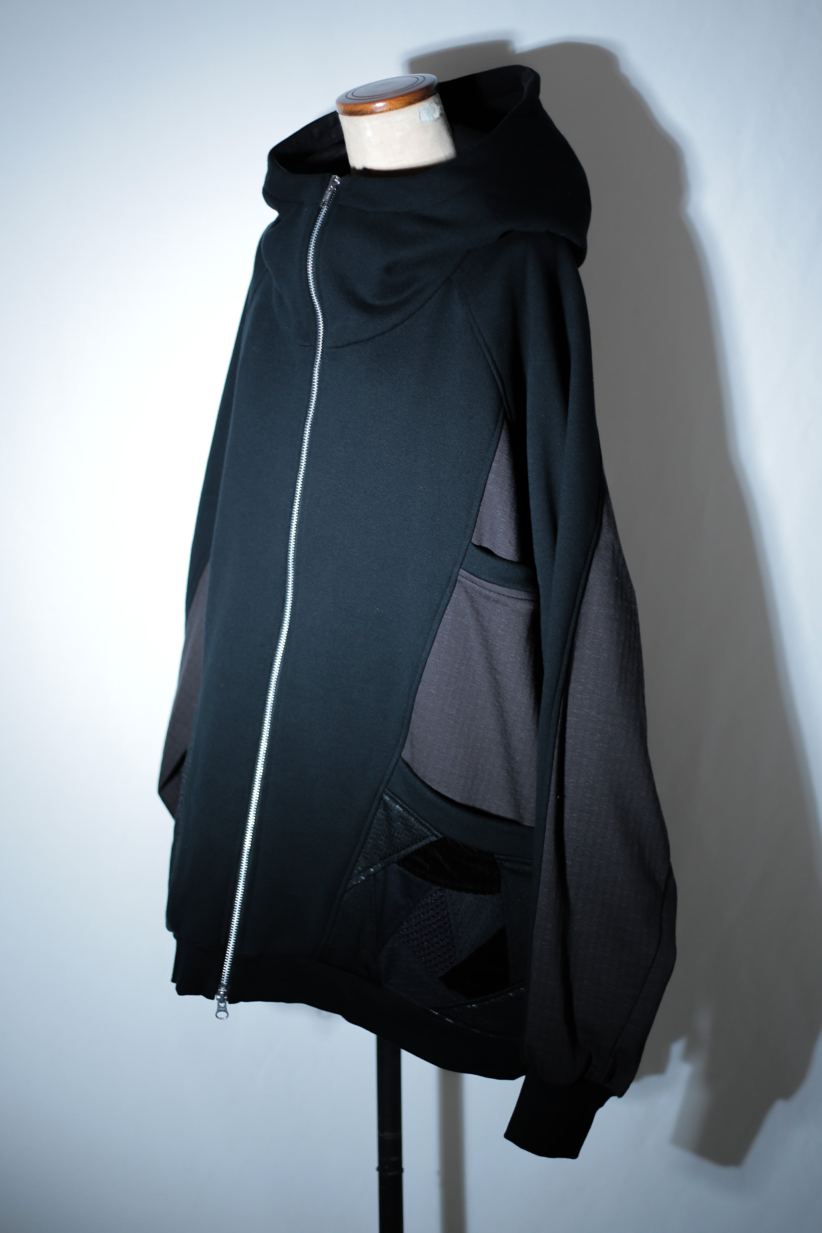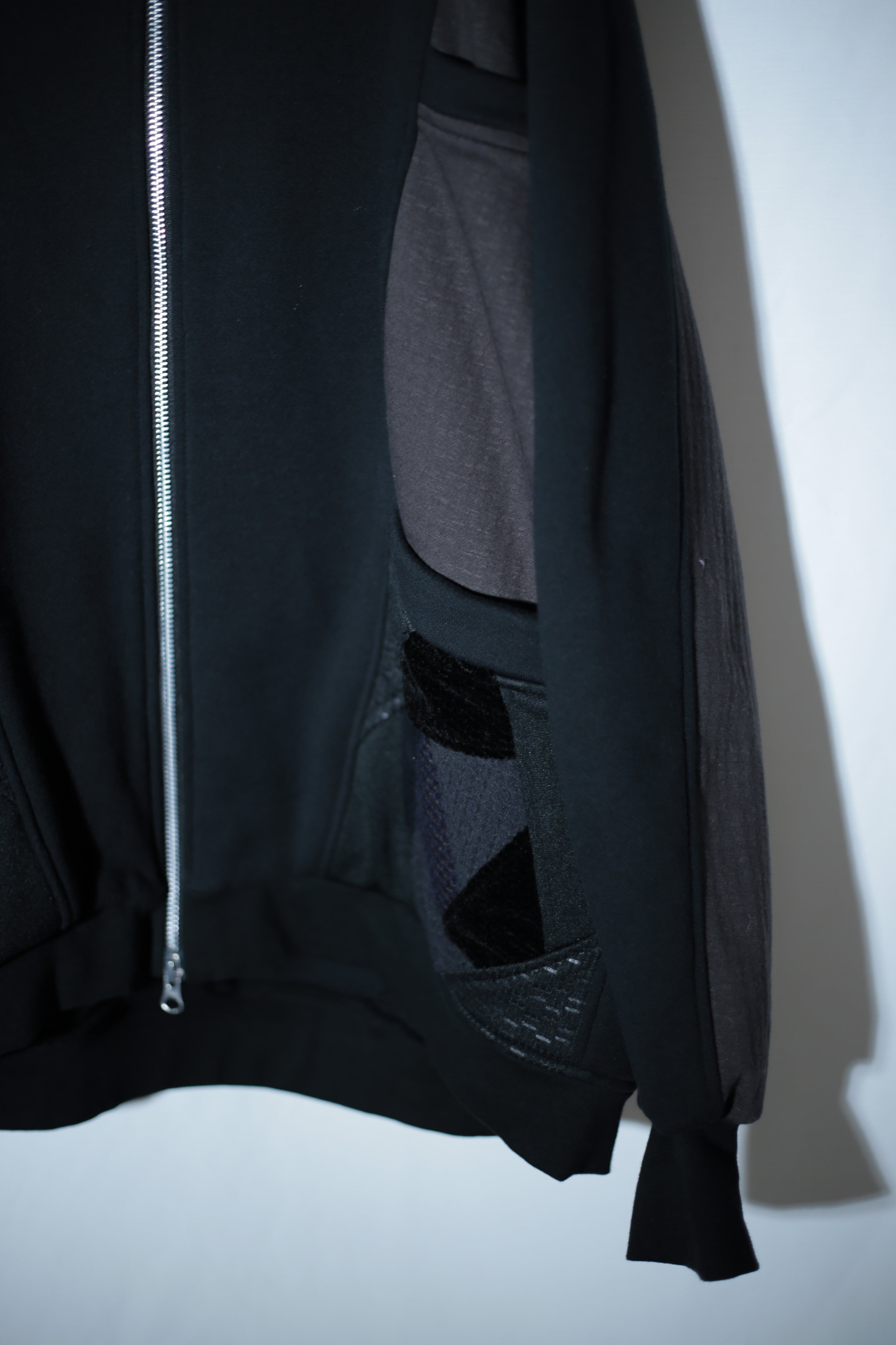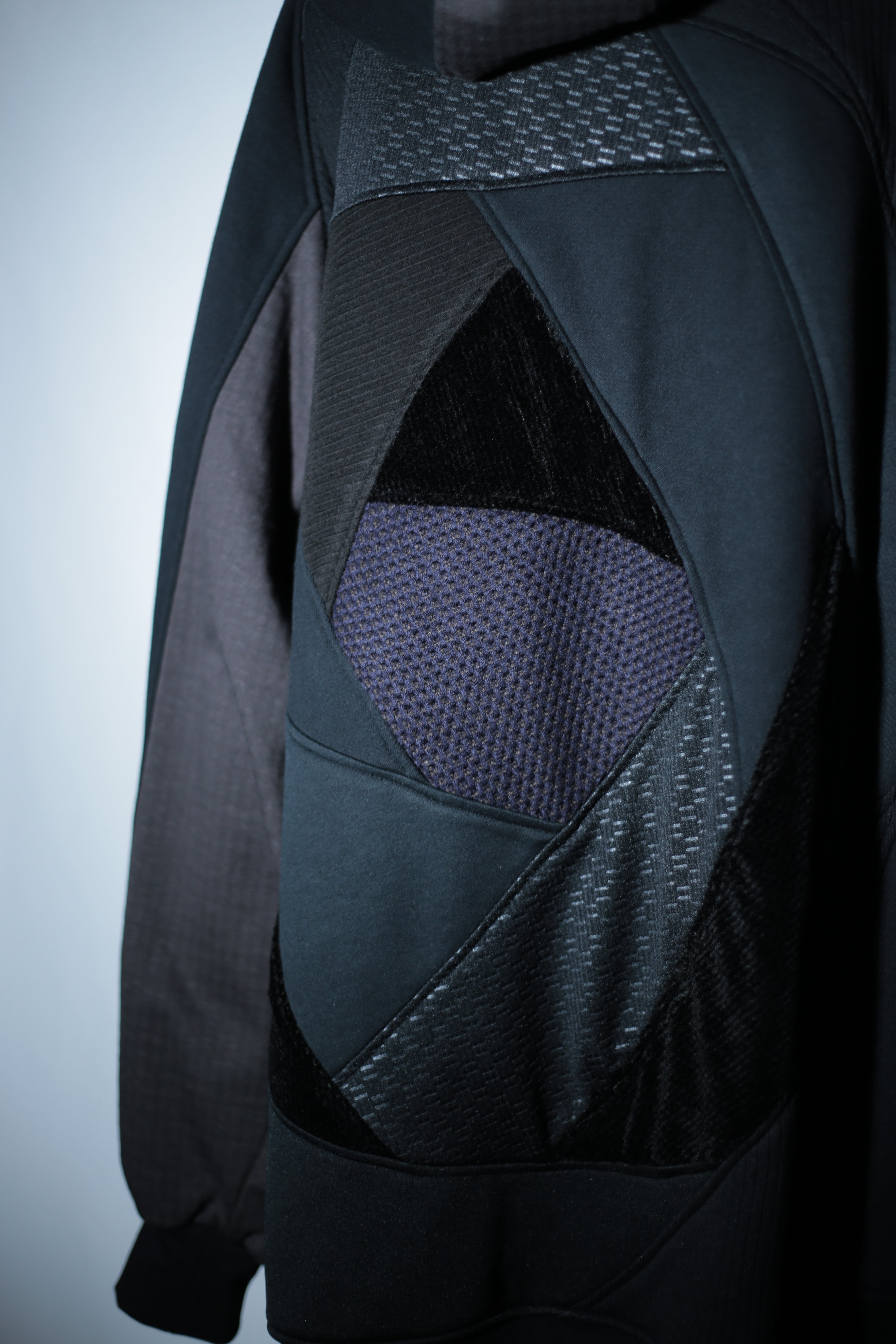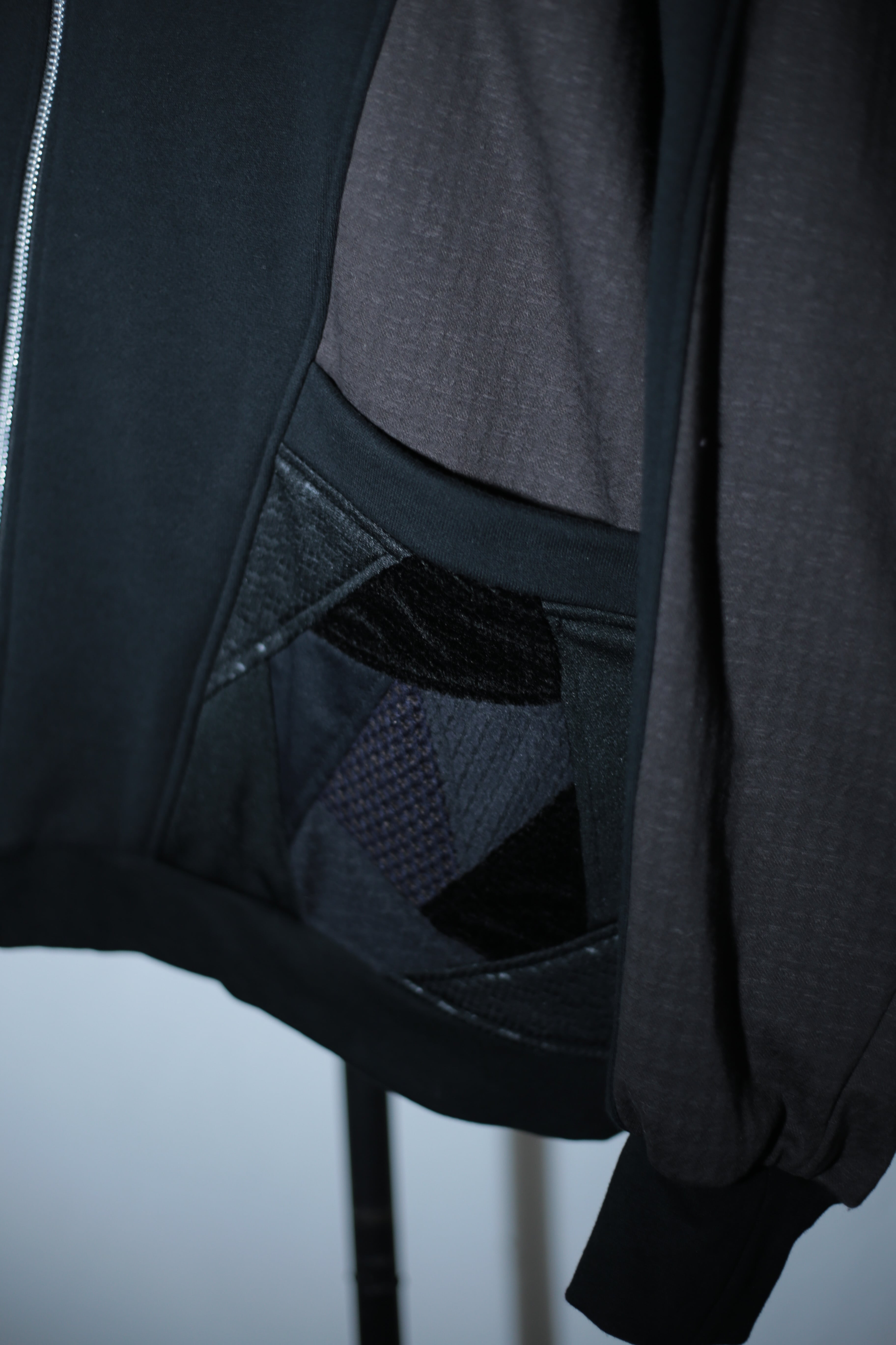 黒を基調とした静かな構成の中に、ジップの直線が一本通ります。