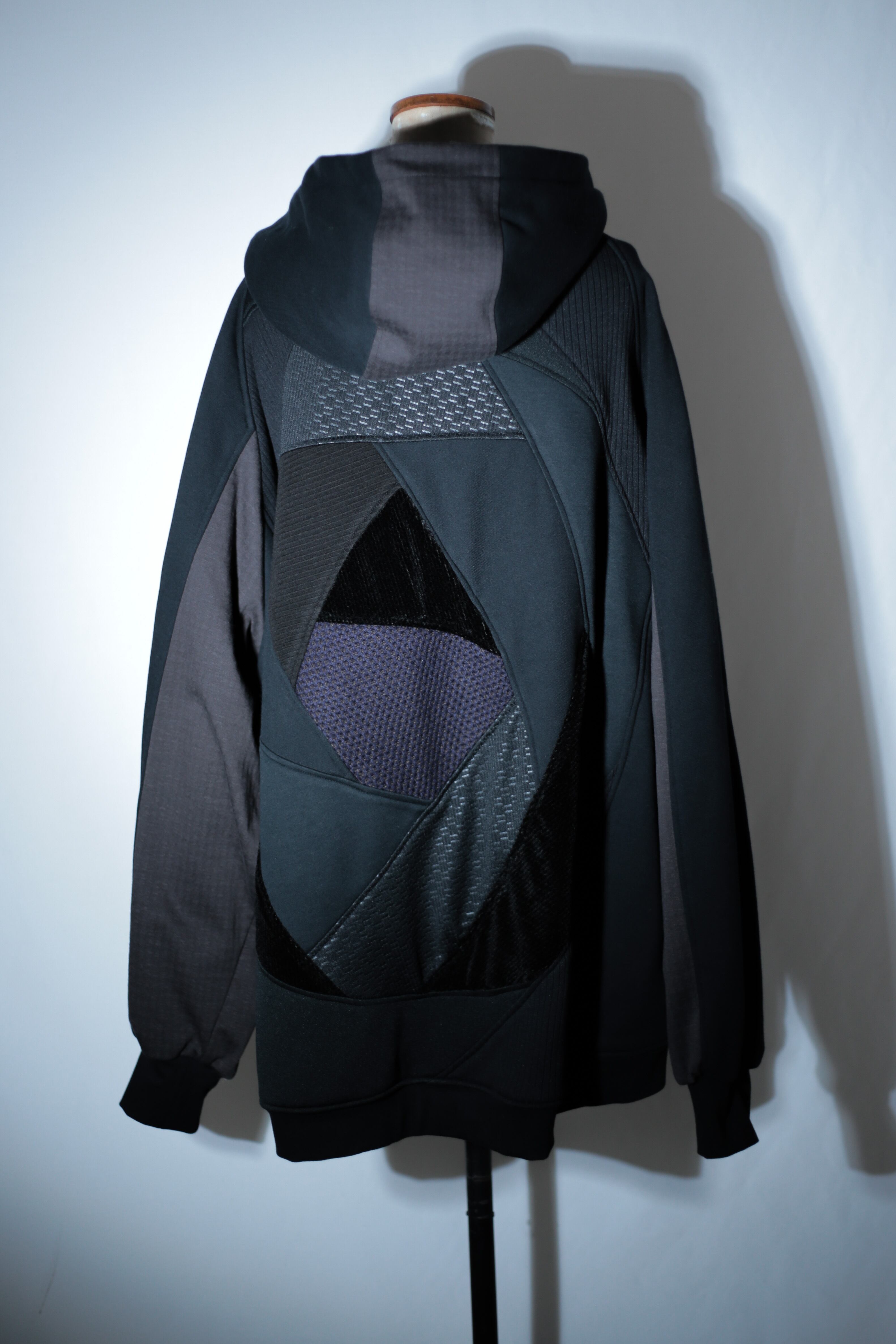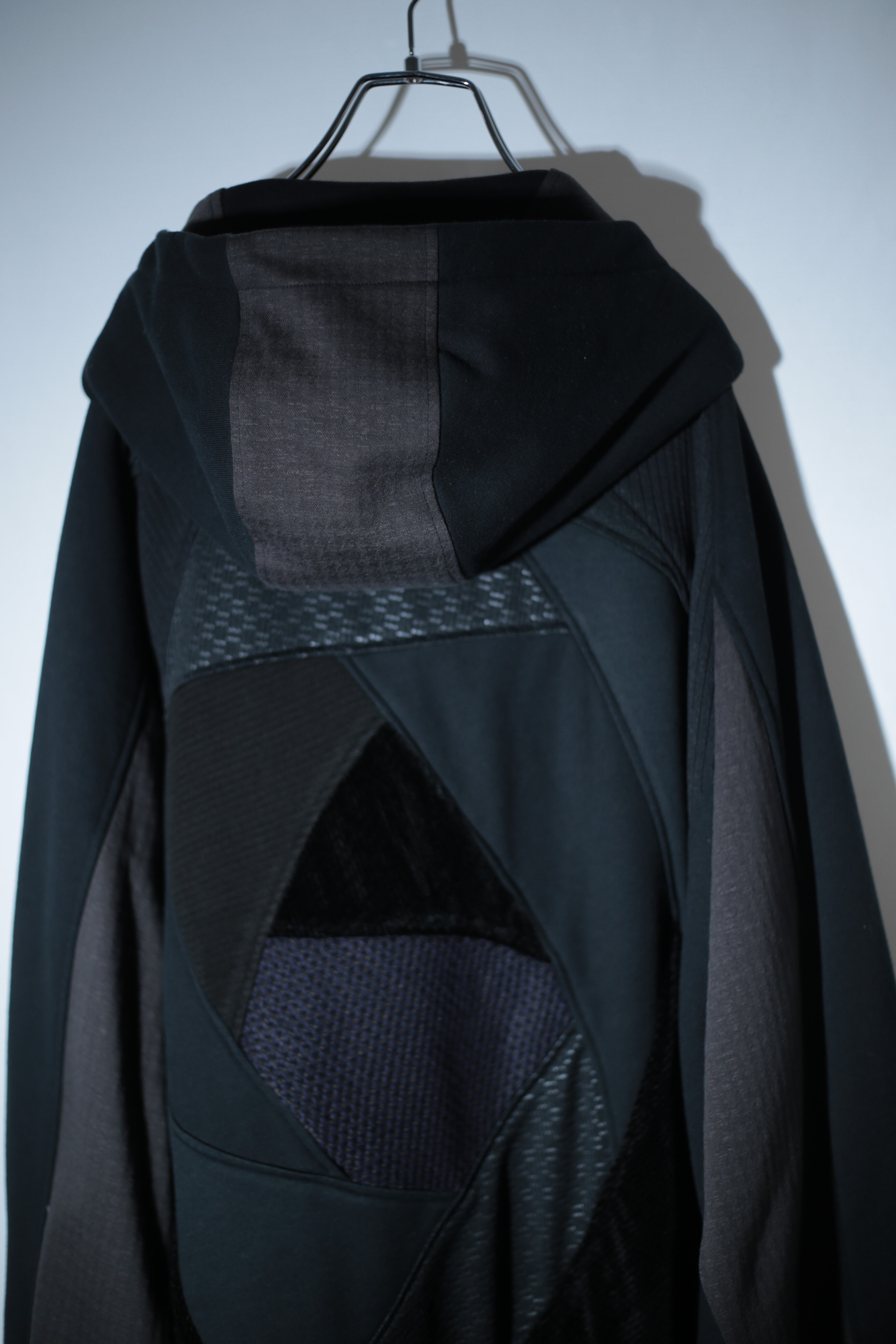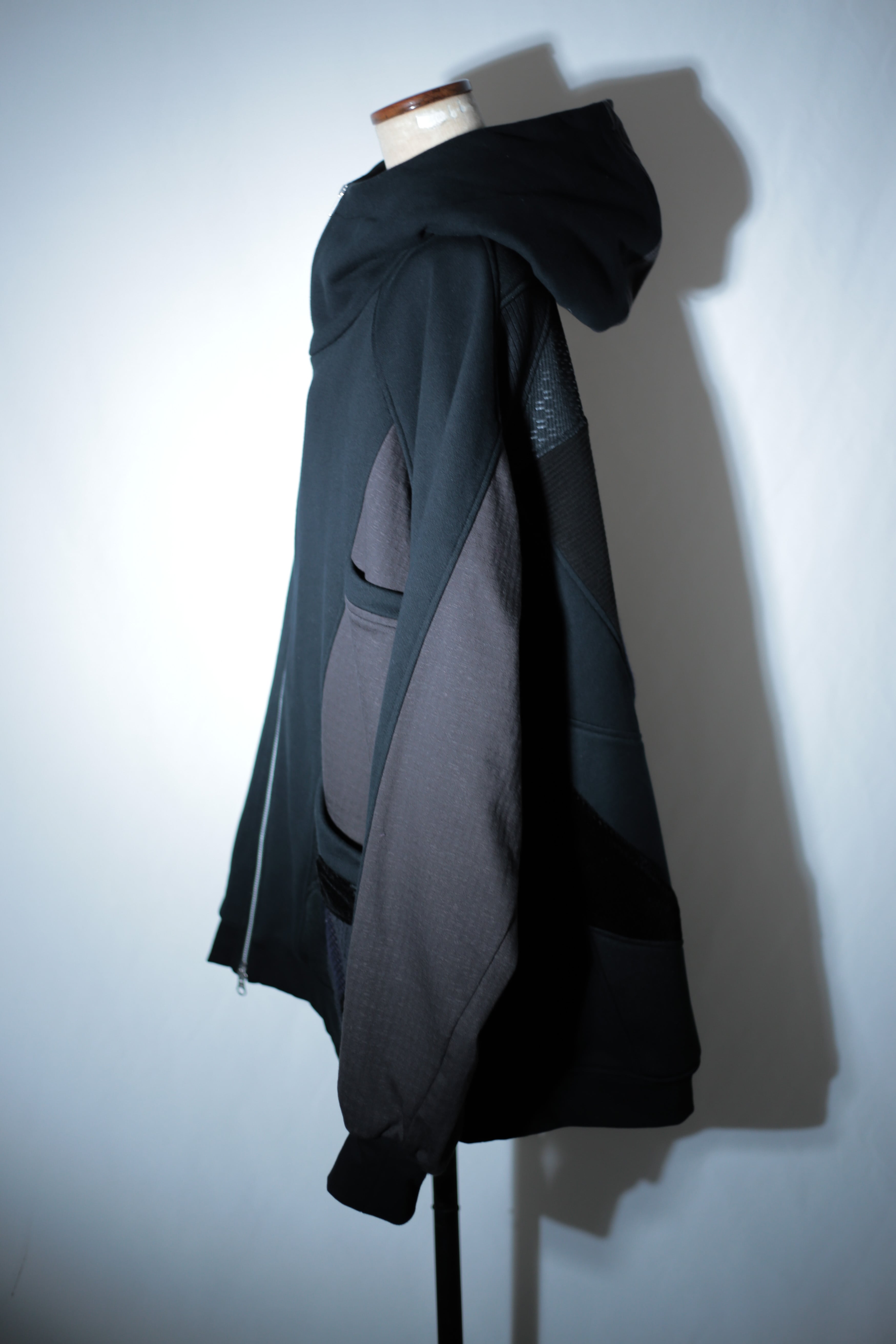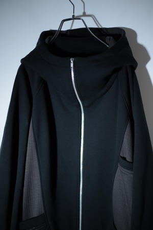黒を基調とした静かな構成の中に、ジップの直線が一本通ります。